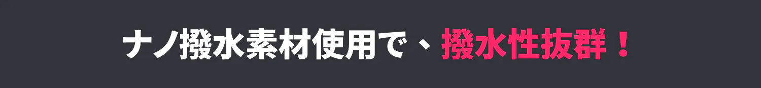 表面にはナノ撥水素材を採用し、耐久撥水加工を施し、優れた耐久性と撥水性を発揮します。激しい雨でも玉のように水滴が転がり落ちて行きます。