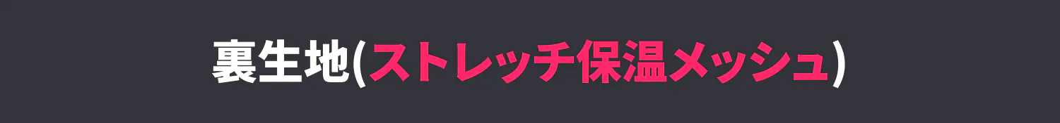 裹地には保温性、透湿性に優れたストレッチメッシュを使用。表面のストレッチ性能を十分に発揮できるように裹生地もしっかりと伸縮性があり、ハ一ドな動きにも対応します。汗や湿気をジャケット内から排出し快適な着心地を維持します。