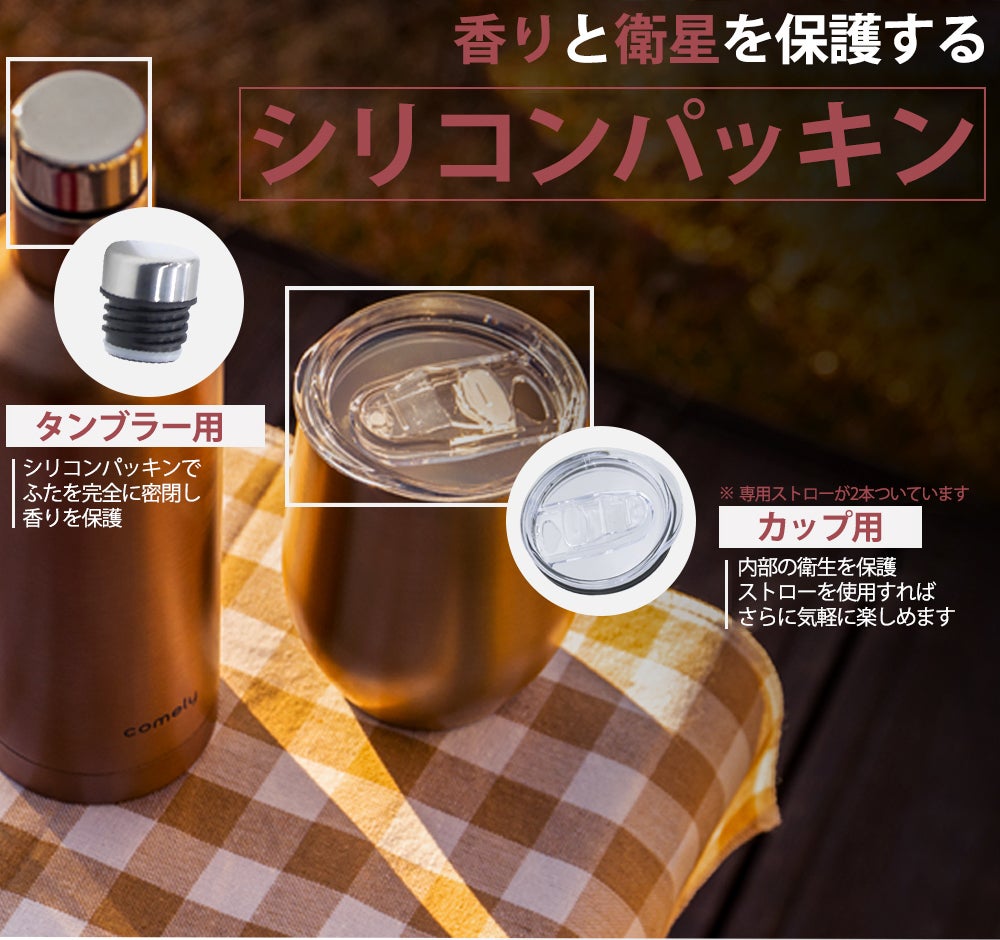 comely付属のシリコンパッキンを使用すれば、お酒の香りと衛生を保護し快適にアウトドアを楽しめます。