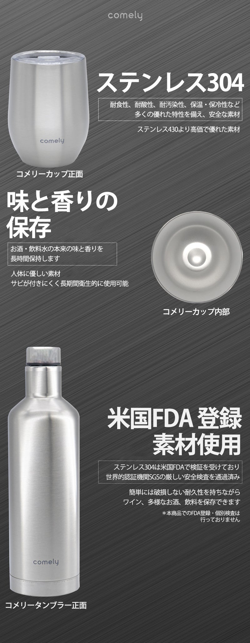 comelyは他のステンレスに比べて安全性、耐久性、保存性に優れた高価なステンレス304で製造されています。