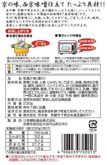 『ちくわ』の入った豚汁は、京都らしい西京味噌(白味噌)仕立てで、豚肉・大根・にんじん・ジャガイモ・ごぼう・油揚げなどがたっぷり入り、こっくりと濃厚に仕上がっています。