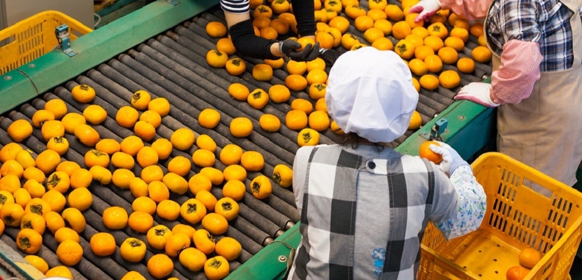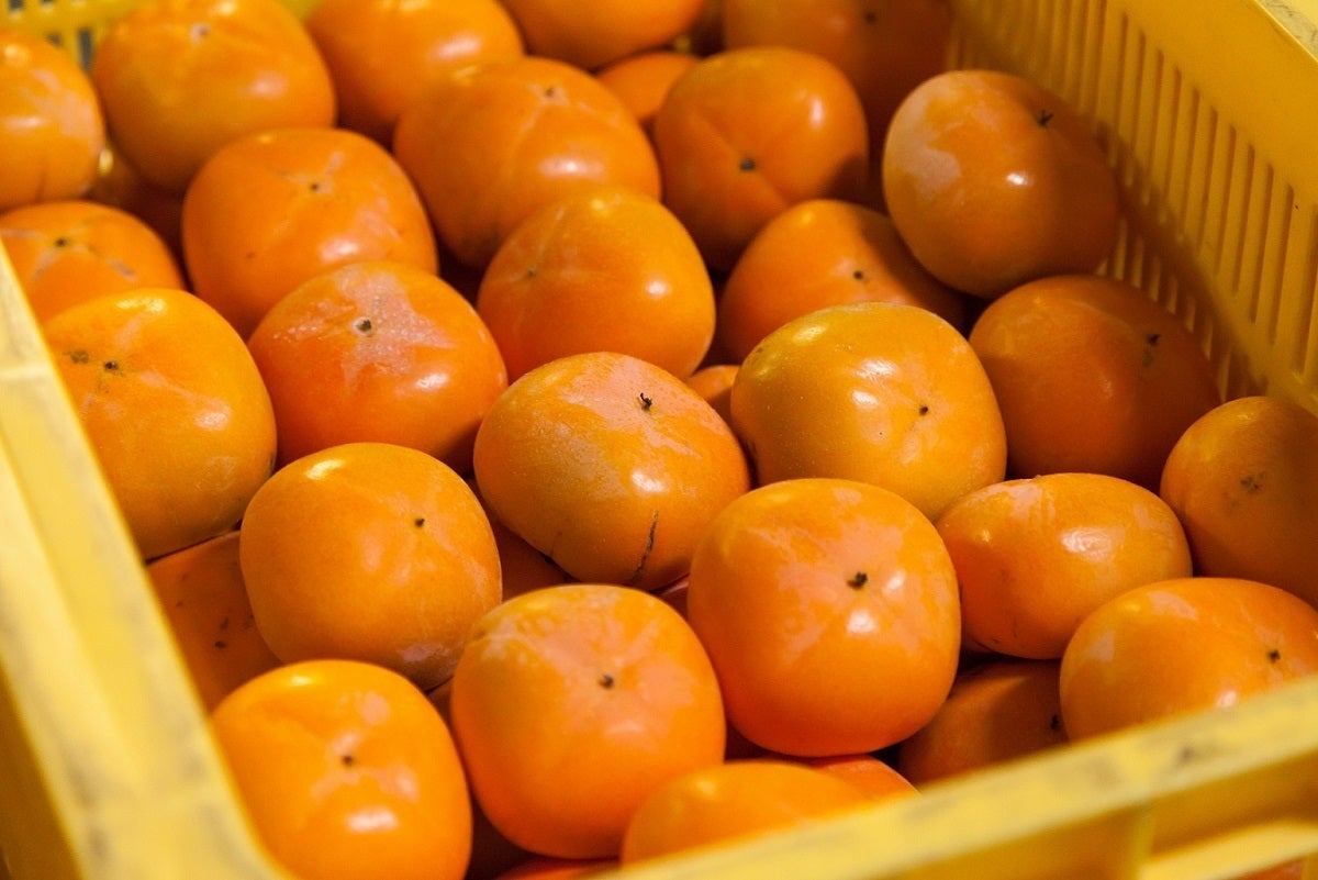 通常、柿は20キロ入りの大きなカゴで保管できるのですが、C級品は柔らかいため、1つ1つ丁寧に並べて柿が重ならないように保管する必要があります。実はこのことも、柿の加工が難しい理由の一つです。