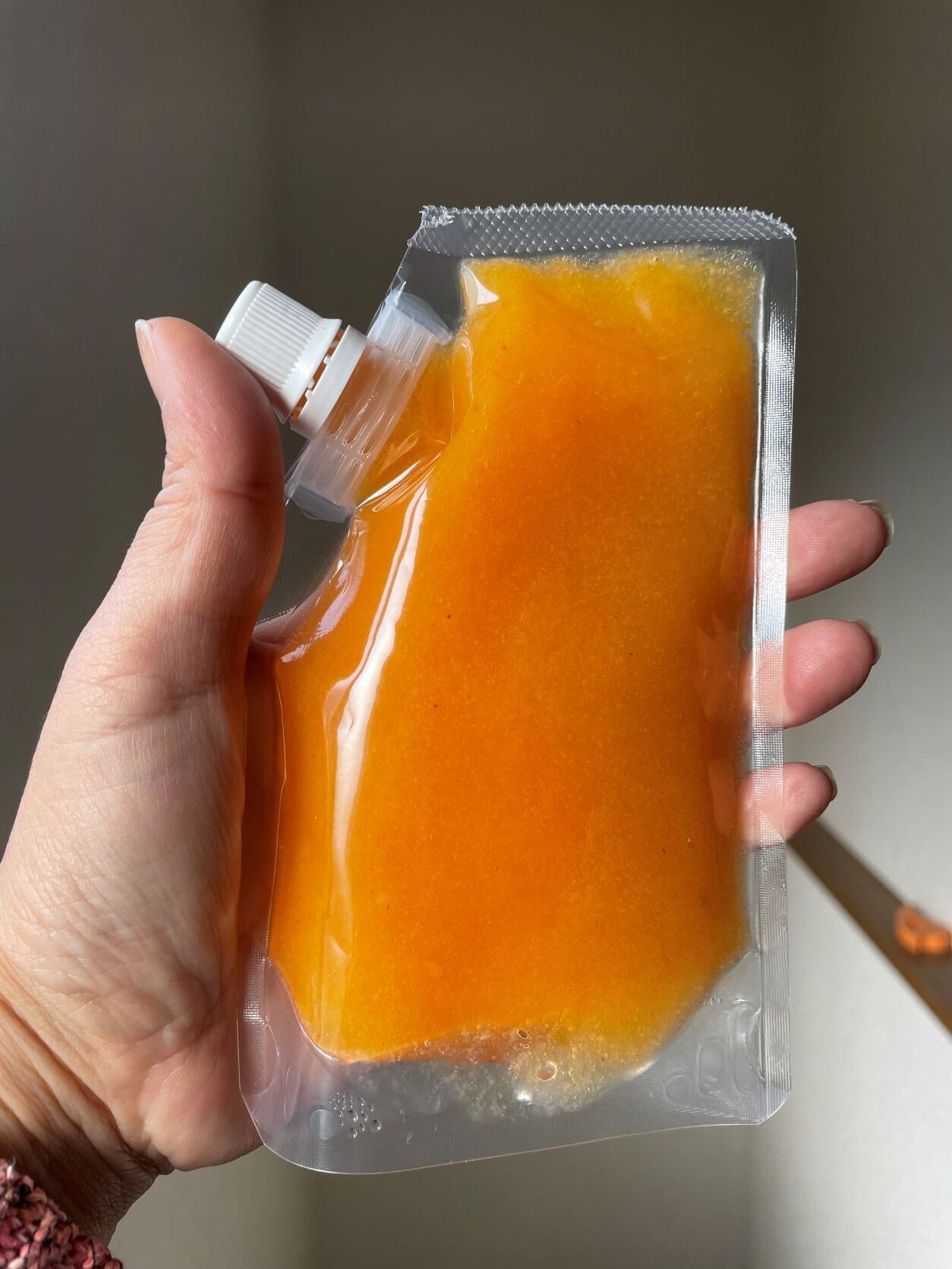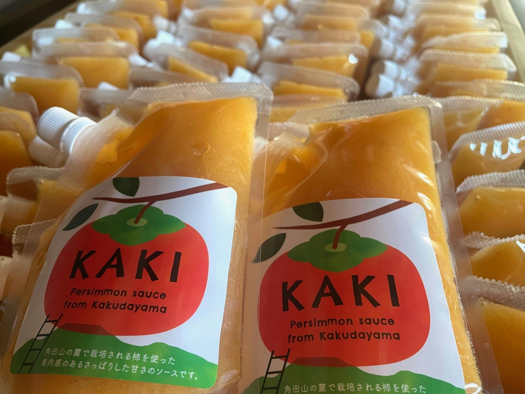 今回は、2022年秋に収穫する「刀根早生」又は「平種無」品種の柿を原料として、2023年1月に新潟市南区にある加工会社石山味噌醤油さんで作ります。今年度はこの1回のみの製造加工です。皆様には、限定品の出来立て柿ソースをお送りします。保存しやすいように立体型パウチタイプの容器を使用しますので、郵便又はDM便等でお送りします。