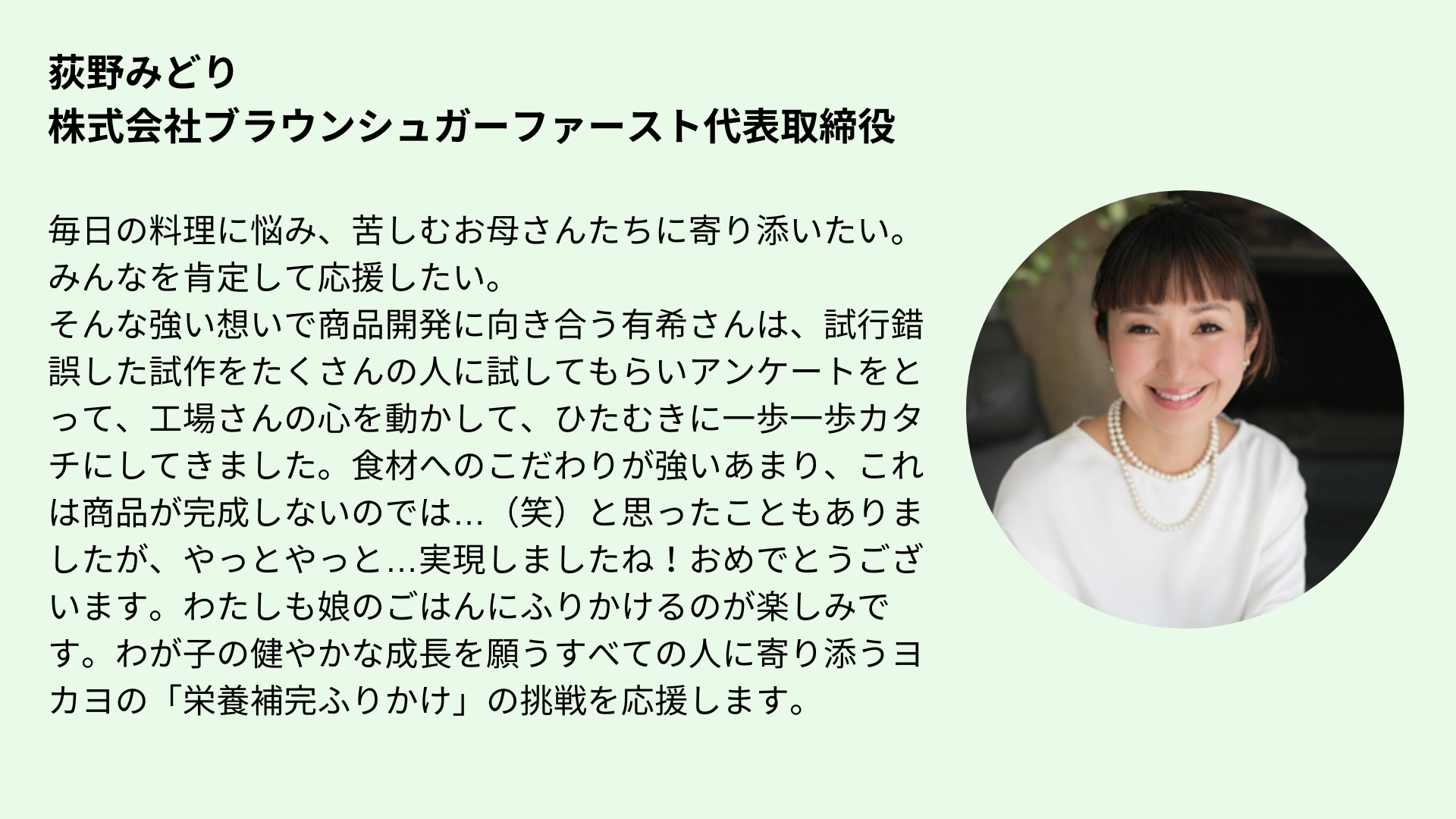 こうして、わが子の一言がヒントになり、子どものための “栄養をサポートするふりかけ” を開発することになったのです。