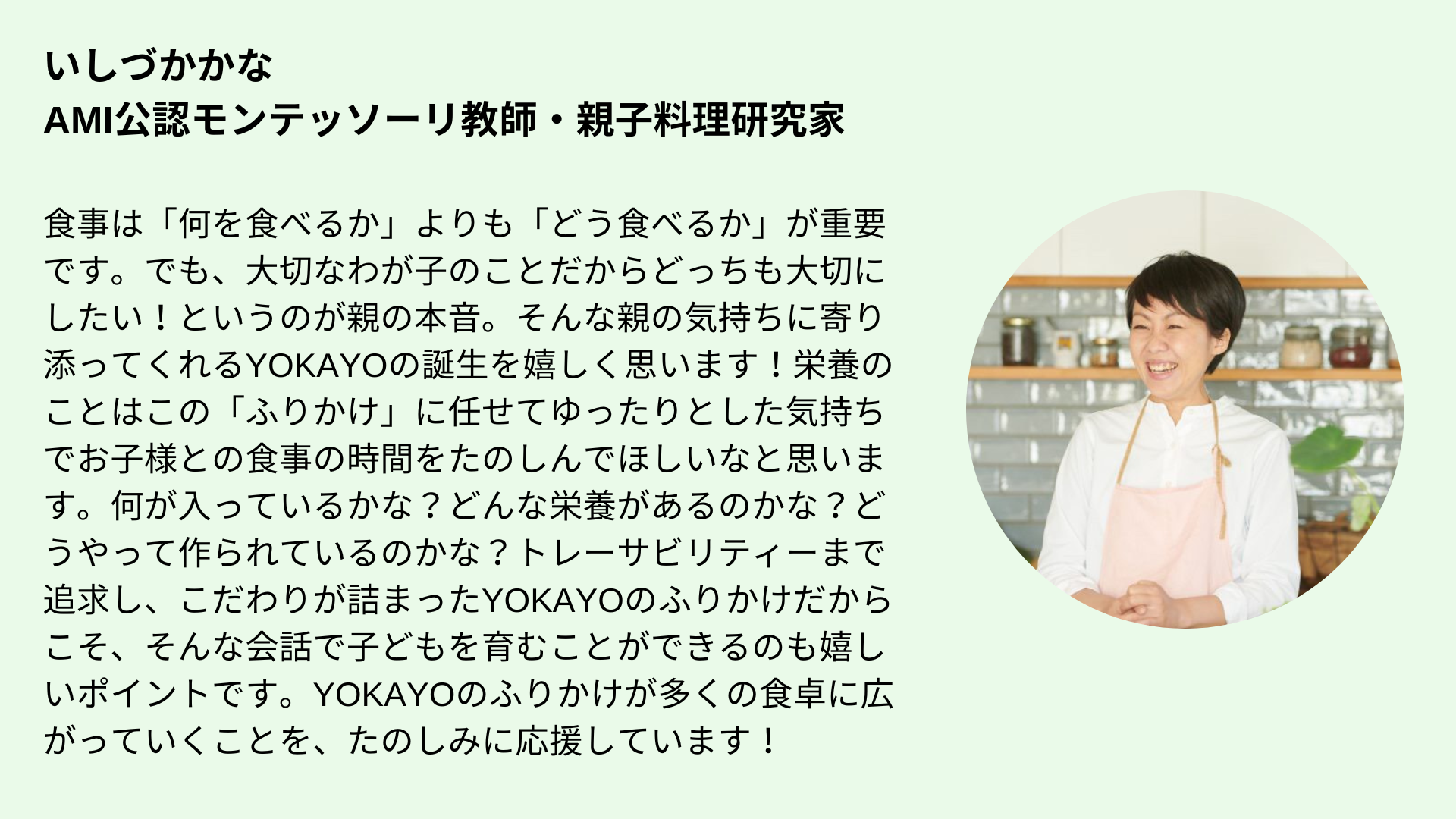 子どもの健康食品ブランド YOKAYOの鈴木有希と申します。