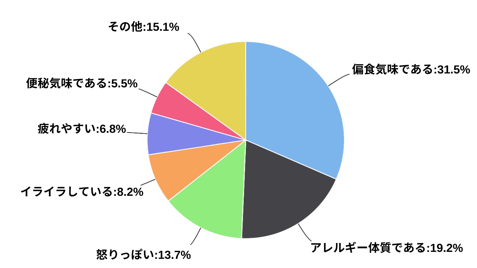 多くのお母さんたちが、子どもたちの栄養バランスを気にしながら食事を作っていることがわかりますね。この結果をもとに、お悩み別のふりかけを作ることにしました。