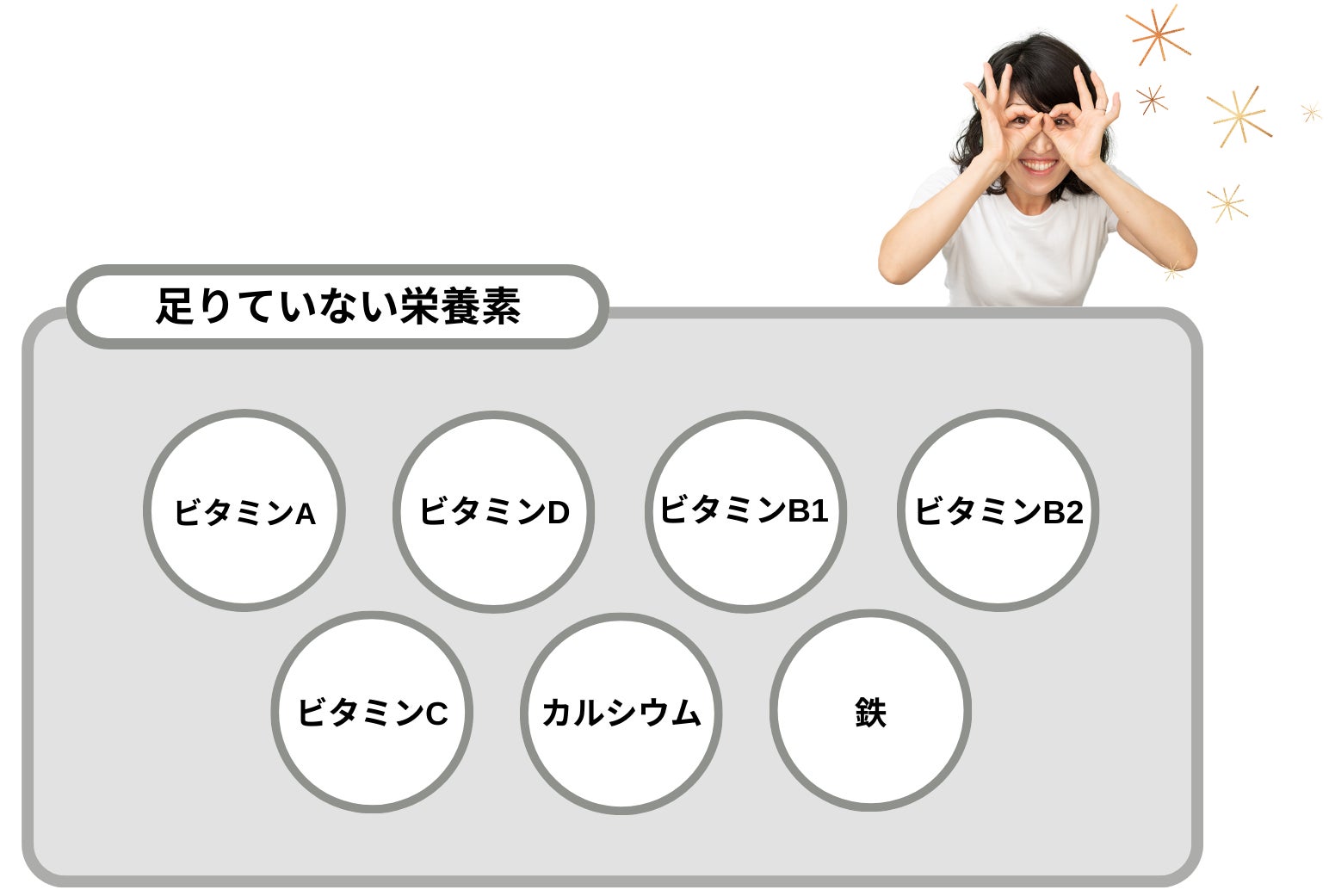 YOKAYOのふりかけは、大学病院に所属していた管理栄養士がレシピを考案しています。厚生労働省の報告資料(※1,2)をもとに、3歳~12 歳の子どもたちの栄養状況を調べたところ、多くの栄養素が不足していることを発見!!