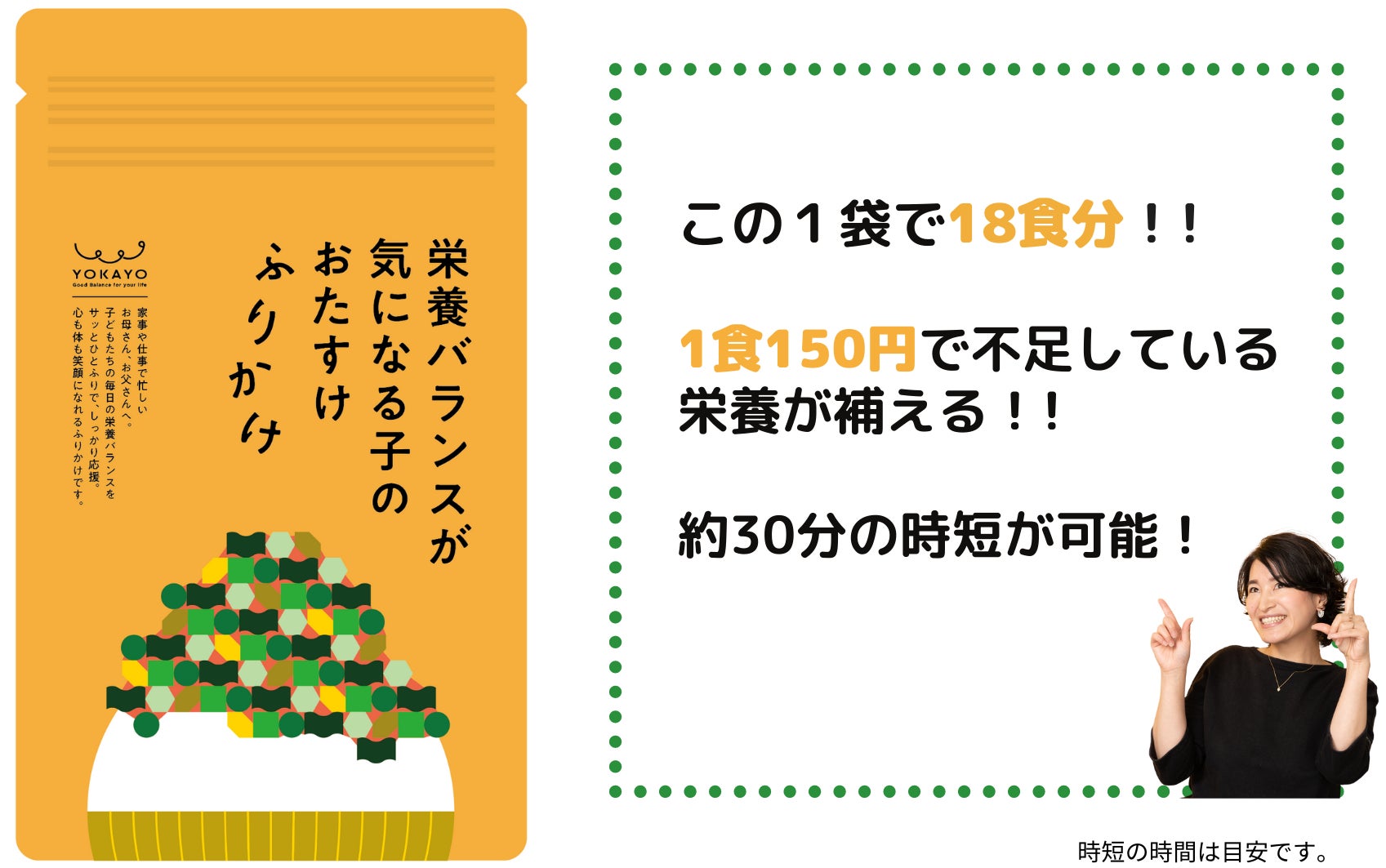 YOKAYOのふりかけは、ご飯にかけるだけで不足している栄養をしっかりサポートします。