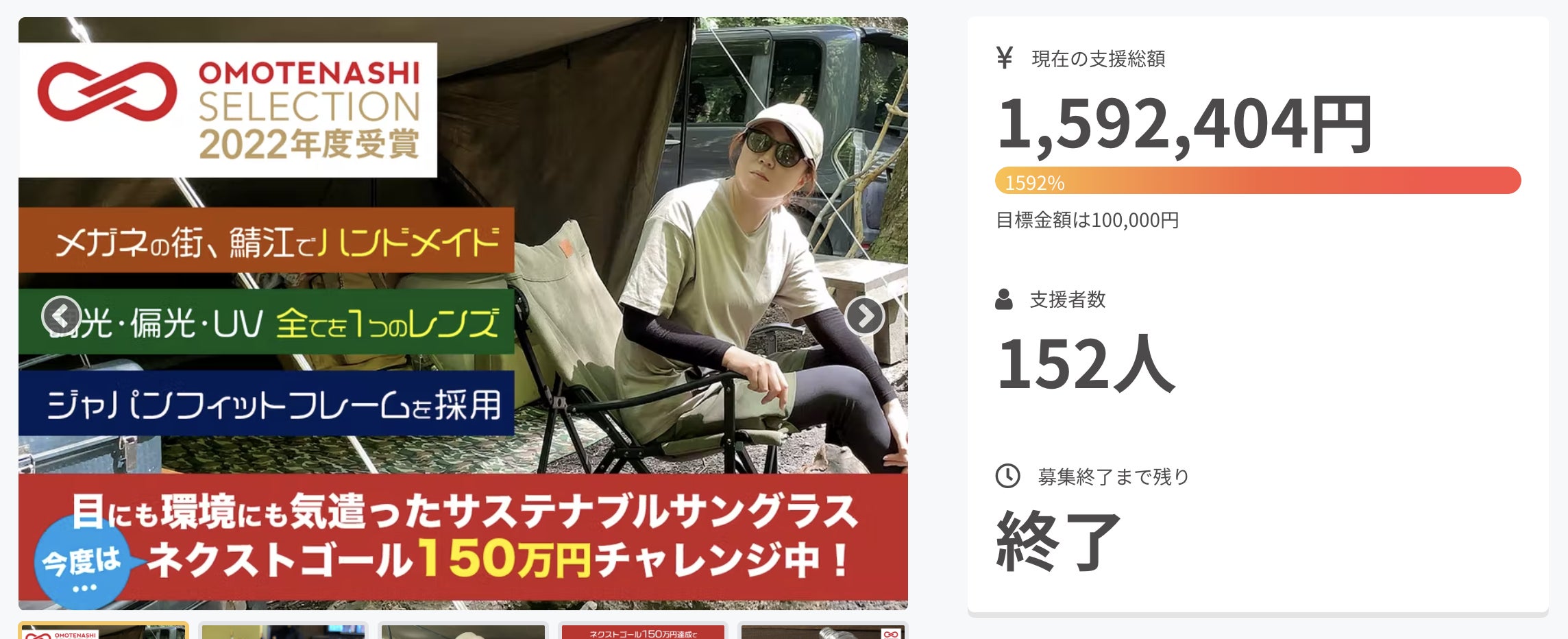 Sorge×Re:第1弾は、おもてなしセレクション2022を受賞し話題となった人気のアウトドア派のサングラス。