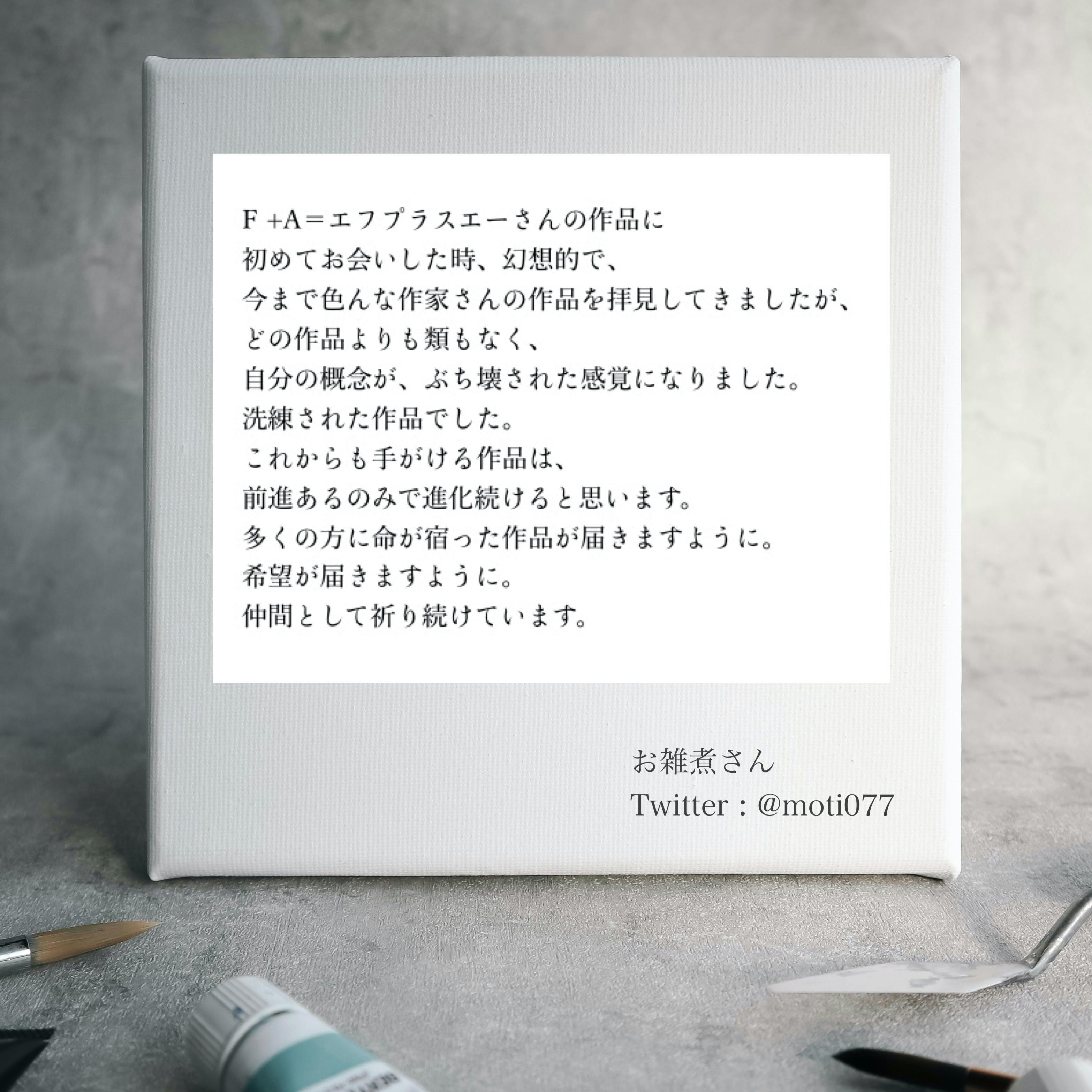2022/08/23 20:12お待たせいたしました。リターングッズが出来上がりました。つきましては待ち受け画像の送信は今夜より、絵画、グッズは9月1日より順次発送手配に移らせていただきます。お受け取り日時にご指定のある方は8月末日までにメッセージ機能よりご連絡頂ければ幸いです。(配送サイズによってはご指定ができない場合がございます。あらかじめご了承ください。)それでは、今しばらくお待ちください。よろしくお願いいたします。37 もっと見る