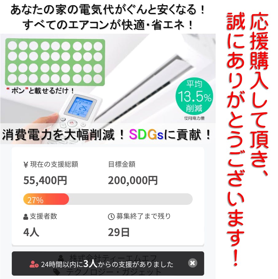 私たちは、1人でも多くの方にエコプレートを知って頂き、1台でも多くのエアコンにエコプレートを使用して頂くことを目指し、今回のクラウドファンディングに挑戦しています。