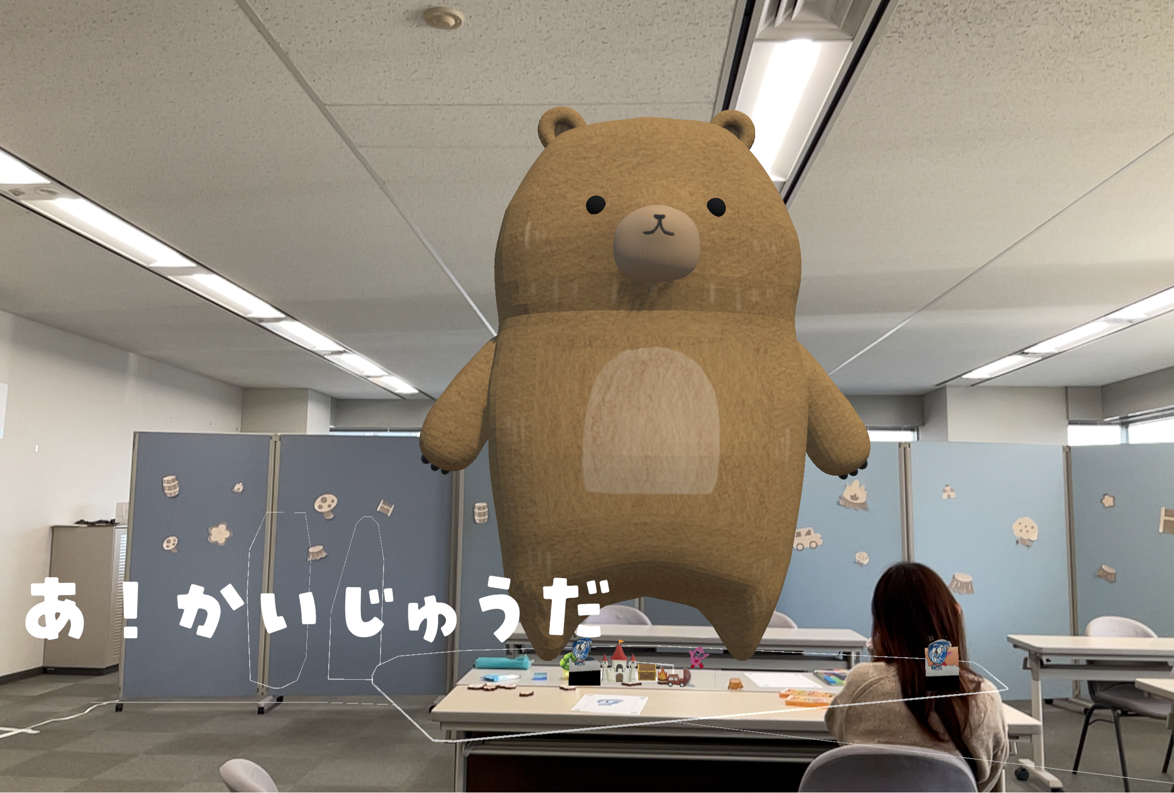 また、さらにオリジナリティを加えていくための機能として、子どもの描いた絵をAR空間上に登場させる機能も実装しています。