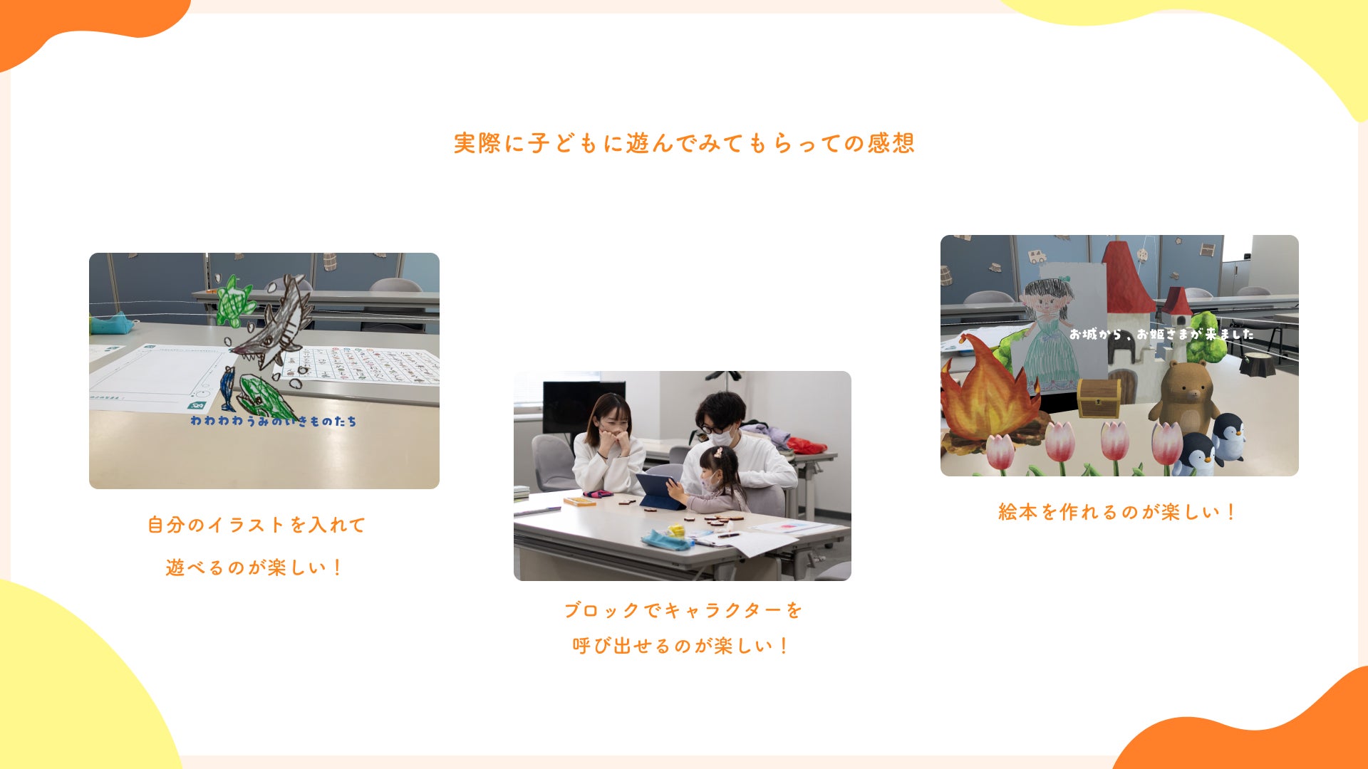 実際に子どもに遊んでもらうことで、どこが面白いと思ってもらえるのか、どこが子どもにとって難しく感じる部分なのか等を知ることができ、サービスの改善のための貴重な声を聞くことができました。