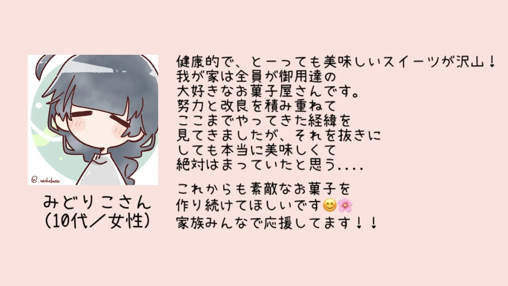 当店のお菓子の試食・プレ注文をして下さった、常連様からのお声を一部ご紹介します!