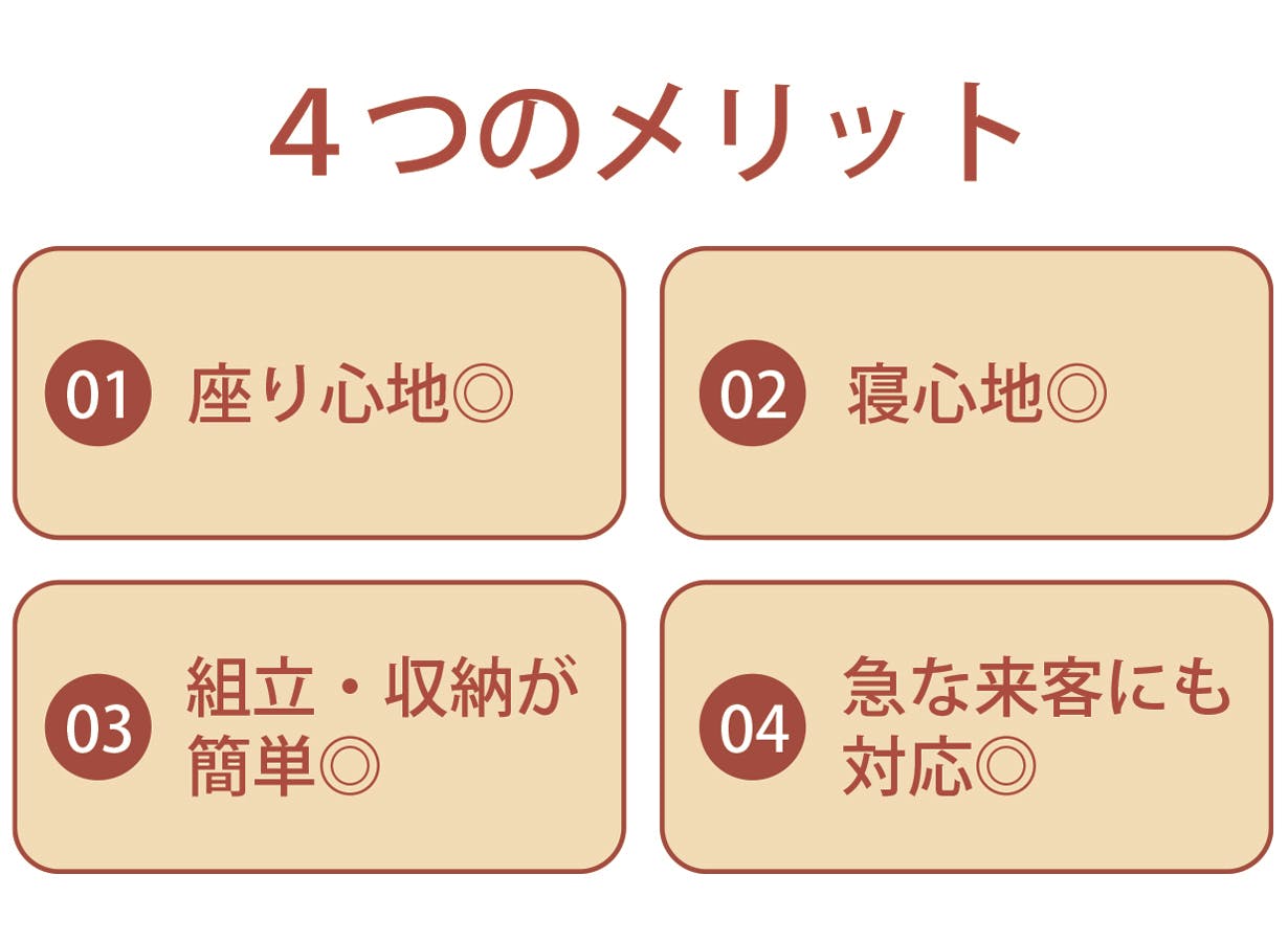 ・ベッドやソファ、カウチにもなる1台4役でお部屋の使い道を何倍にも広げる。