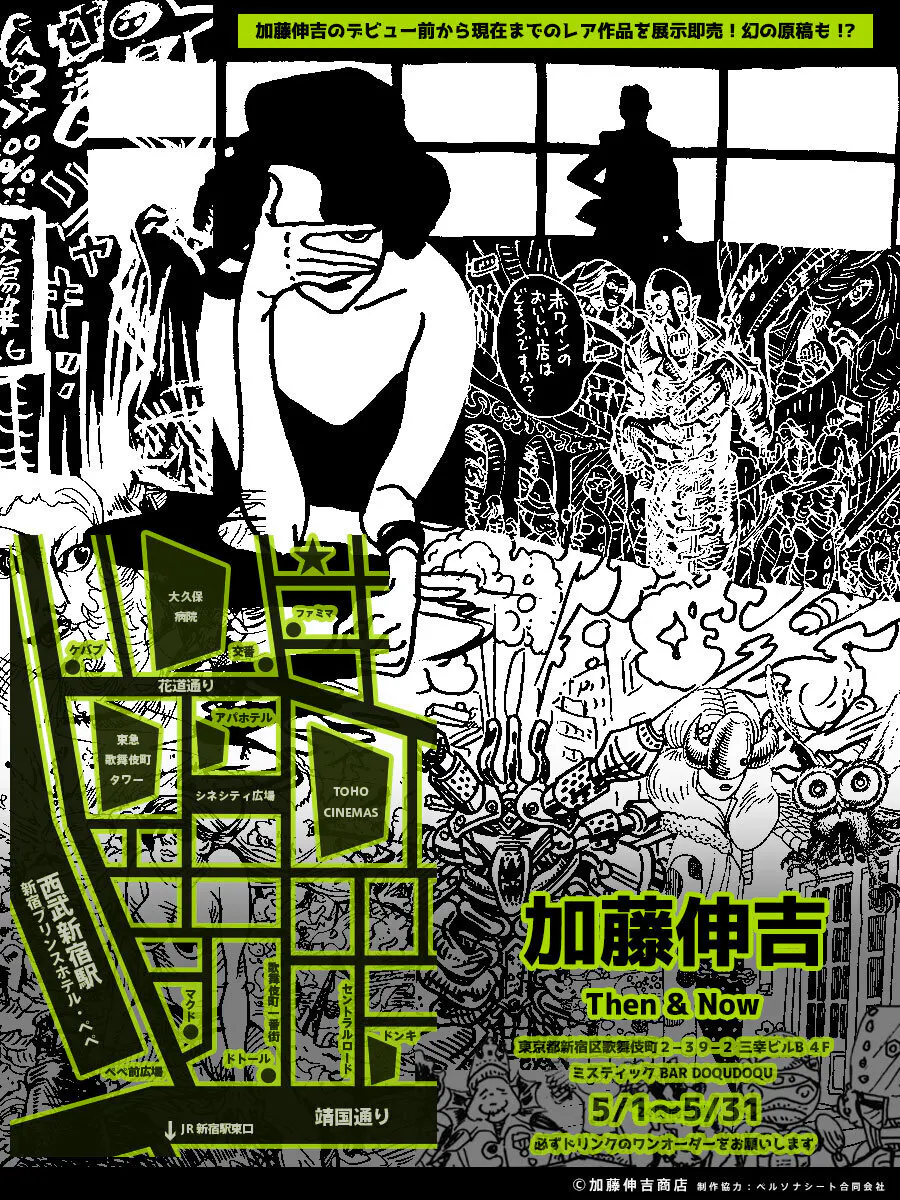 5月は新宿歌舞伎町bar DOQUDOQUにて加藤伸吉個展「Then & Now」を開催することとなりました。