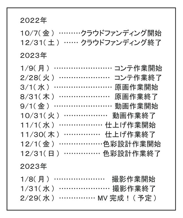 なお、今回のミュージックビデオの制作資金調達の目標金額は、1千万円を計画しています。