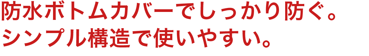 シンプルな構造の防水ボトムカバーを搭載しているから水の侵入をしっかり防ぎます。使いやすいのもポイント。