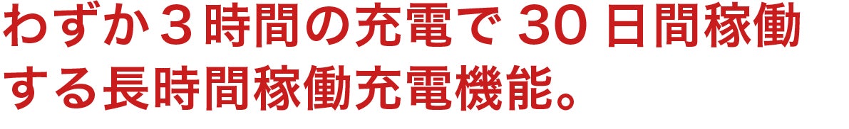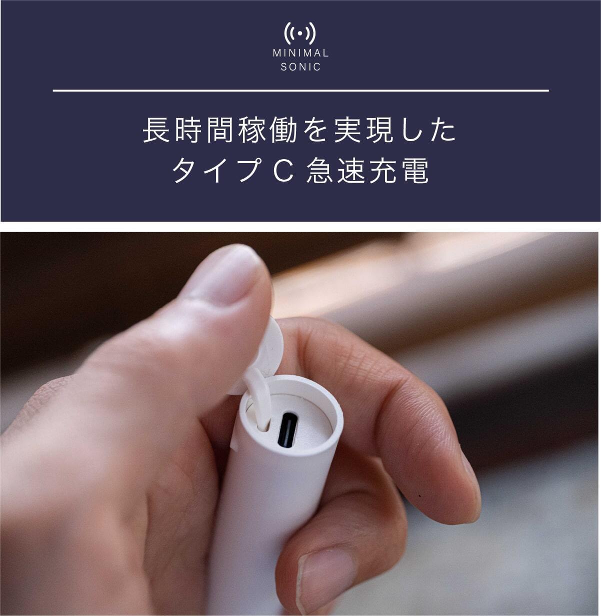 ミニマルソニックは長時間稼働を実現したタイプC急速充電を搭載。わずか3時間の充電だけで、なんと30日間も稼働します。