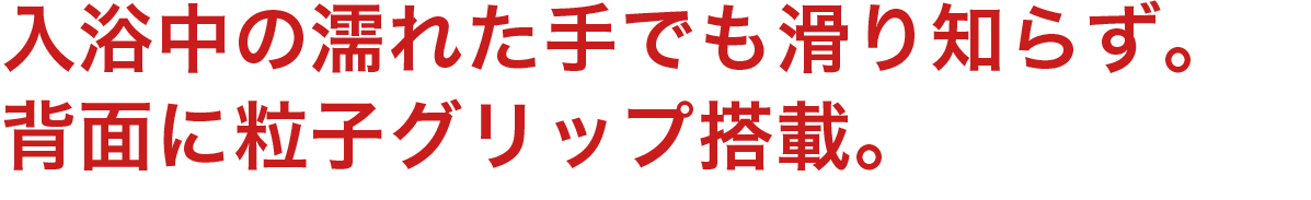 入浴中に歯を磨くには、防水機能の他に水滴などで磨く手が滑らないようにする必要があります。ミニマルソニックは「粒子グリップ」を搭載し、入浴中の歯磨きに最適です。