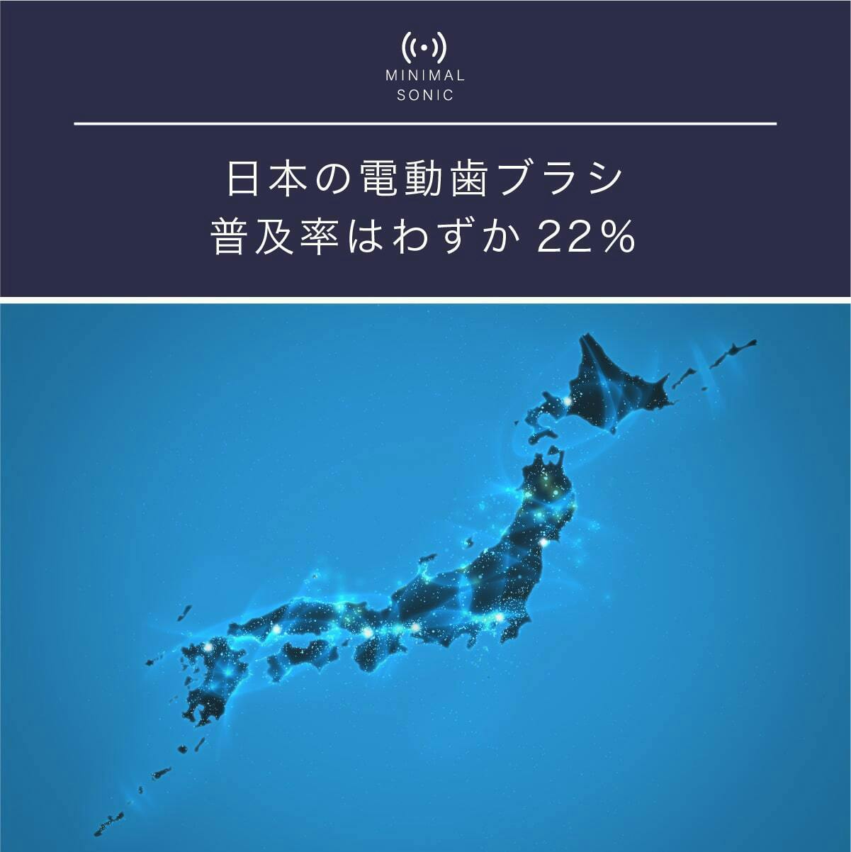 電動歯ブラシの普及率は先進国の42%と比べて、日本は22%と言われています。まだまだ普及が必要だと私達は考えミニマルソニックが普及のきっかけになればと思っています。(※当社調査)