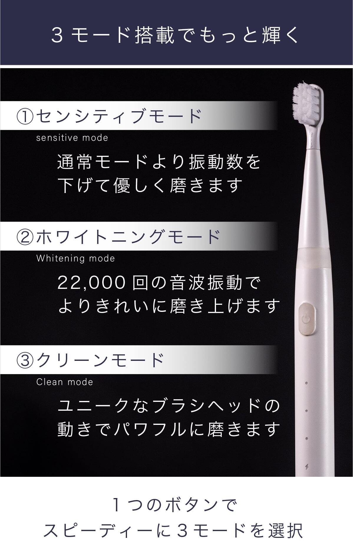 ・手磨きの180倍!ホワイトニングモード搭載!※・おたまからスプーンのような使用感革命!