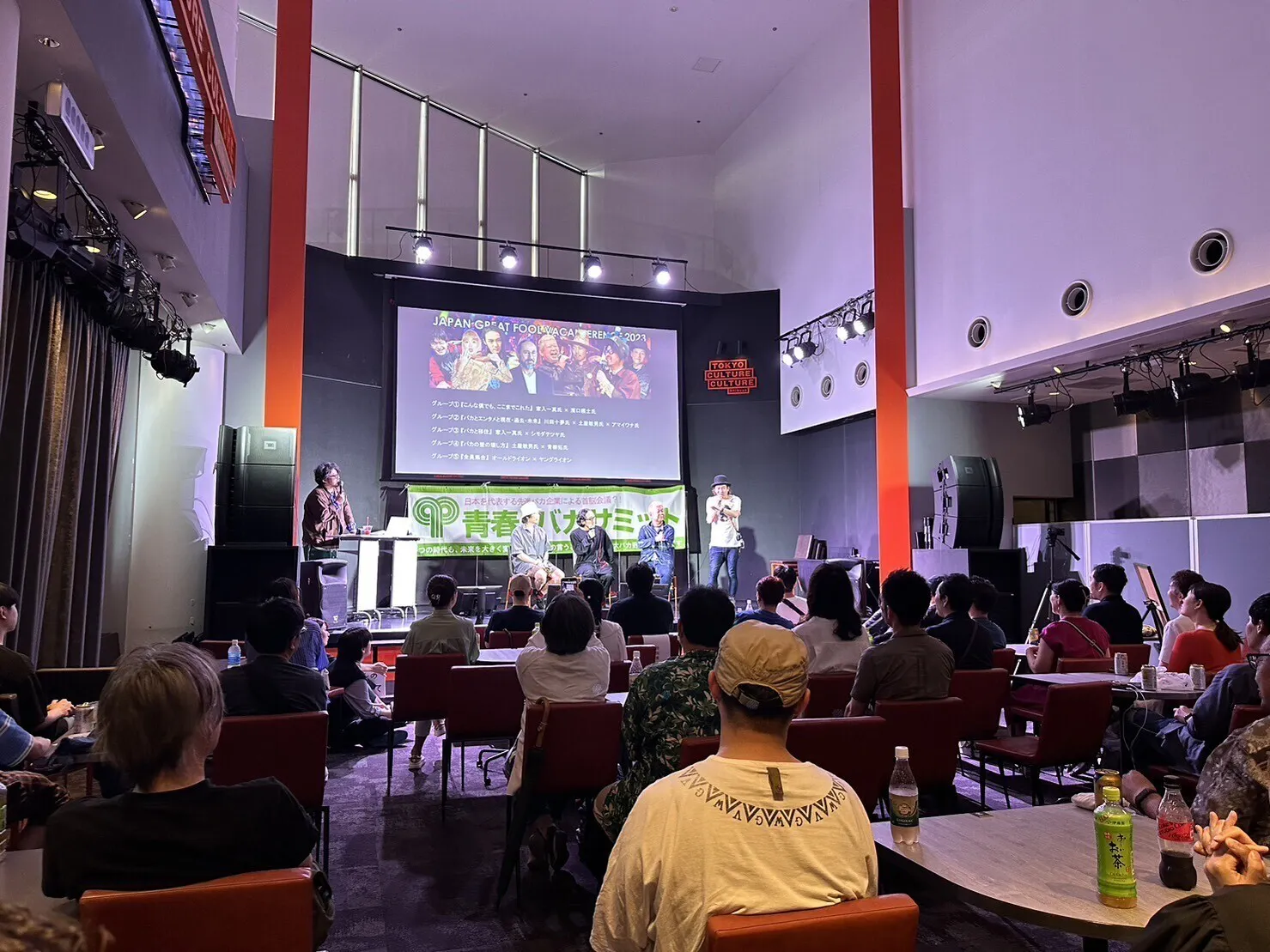 観客席は椅子だけにするのか、テーブルも出すのか直前まで議論していたのですが、結果テーブルも用意しての飲食しながら観覧できるスタイルになりました。