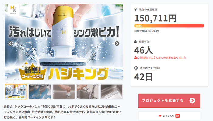 皆さま、大変多くのご支援誠にありがとうございます!開始当日より沢山のご支援をいただき、おかげさまで目標金額を200%達成することができました!完売やまもなく完売となった商品も続出しております。今日は油分の弾き検証として、マヨネーズを使った実験動画を公開します!画面左側がハジキング塗布前、右側が塗布後です。マヨネーズを弾く様子がよくわかりますので是非ご覧ください。ついに残り4日でプロジェクト終了となります。プロジェクトのシェア等、さらなるご協力をしていただけますと幸いです!引き続き、よろしくお願いいたします。