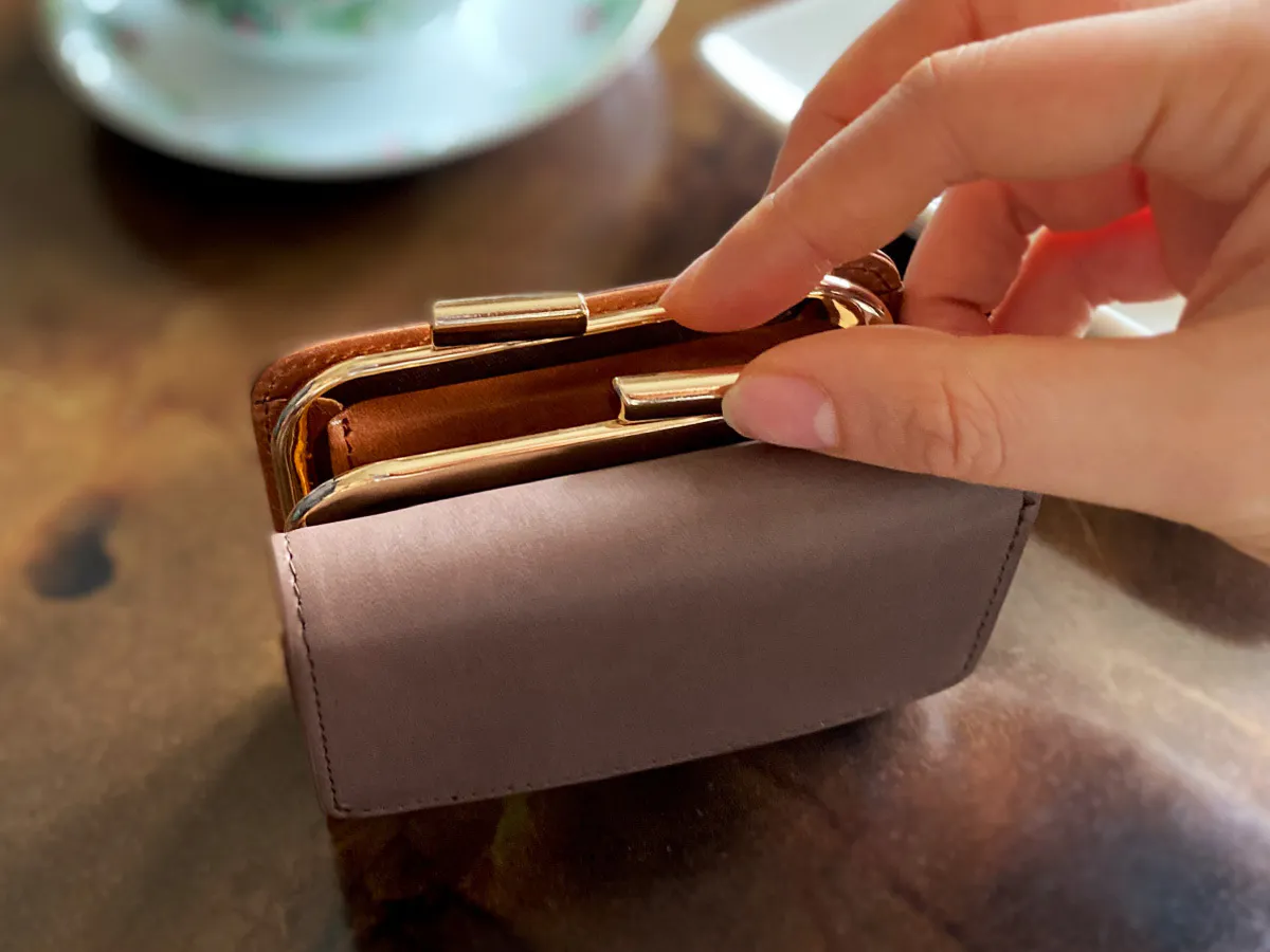 使うほどに艶が増し、深い表情へと変化する高級革素材、サンタクローチェ地方の老舗タンナーConceria Athena社のバケッタレザーを使用した「がまぐち美WALLET」スペックが魅力の小さい財布です