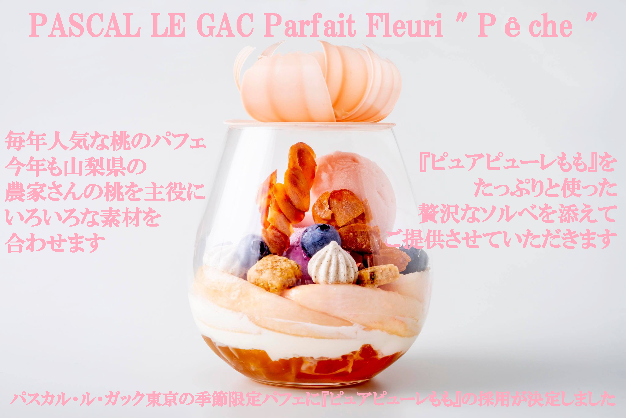 パスカル・ル・ガック東京の季節限定パフェに『ピュアピューレもも』を採用していただくことが正式に決定しました!