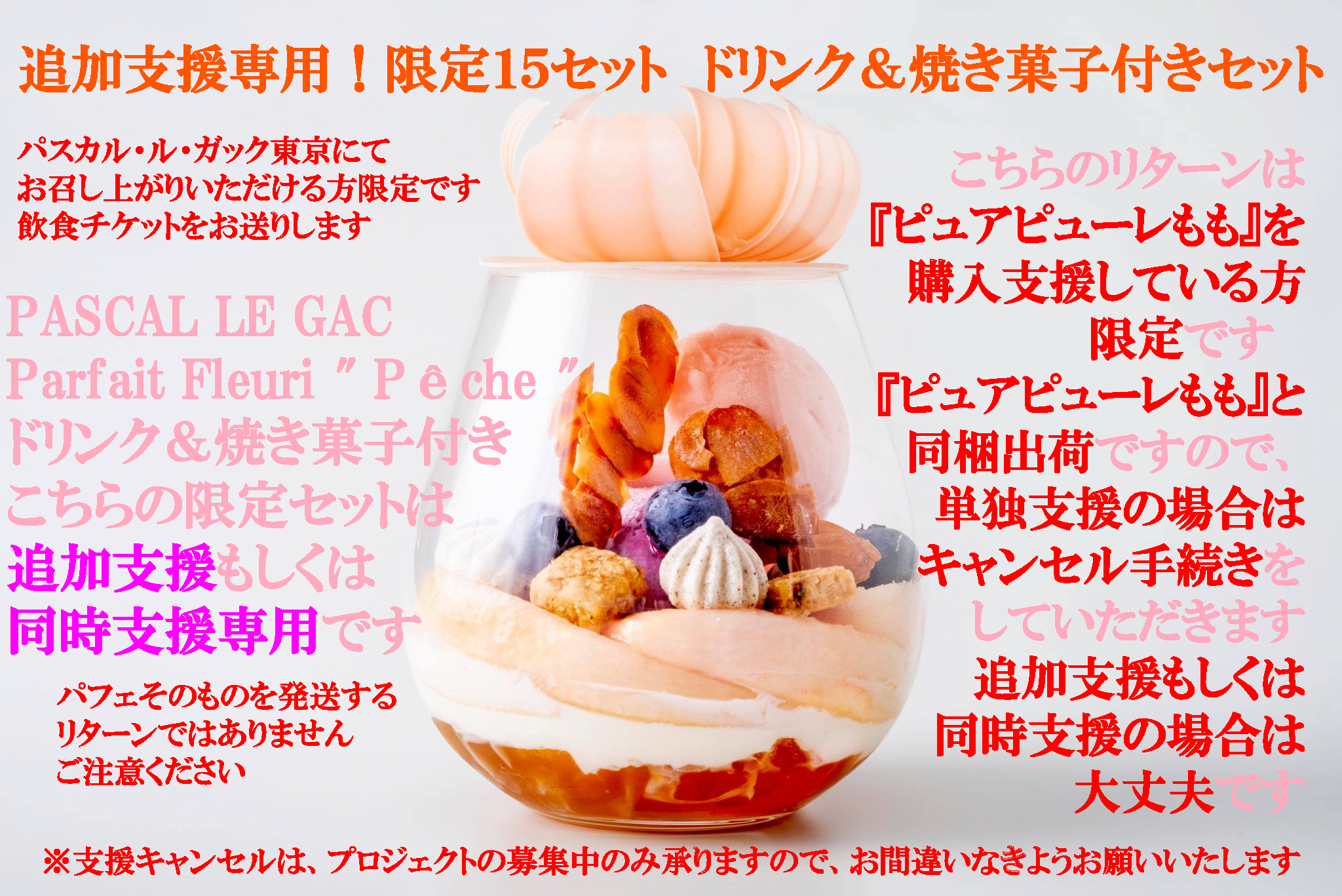 それに伴い、桃を使った季節限定パフェで追加リターンをご用意する予定です!