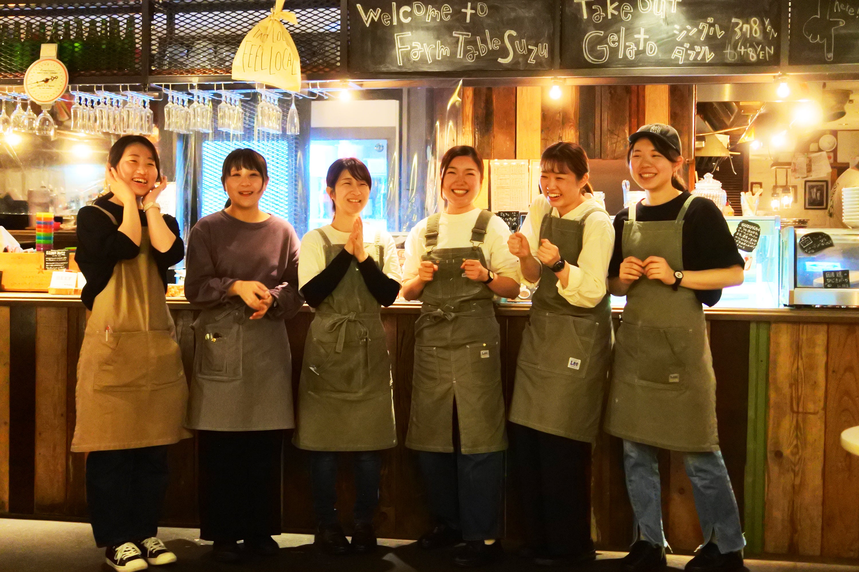ここに写っていないスタッフも含め、笑顔が素敵な人たちと一緒に働いています。FARM TABLE SUZU(以下、FTS)は、新潟市内に生まれて8年目の飲食店。新潟県長岡市を拠点に地場食材や地元の食文化をテーマにした飲食店を展開するSUZU GROUPの、新潟市内一号店としてできたお店です。