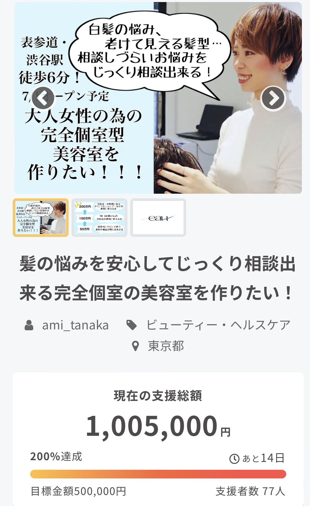 たくさんの方のおかげで、支援金額が100万円を達成致しました!!!