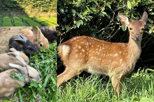 天野さんの茶畑に時折現れる鹿やキツネなどの動物。