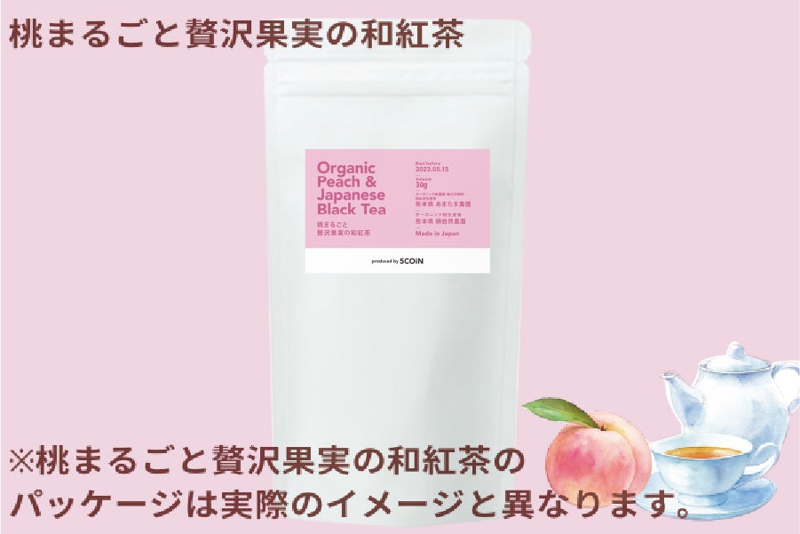 今回リターンとしてご紹介する「桃まるごと贅沢果実の和紅茶」には、同じ熊本県にある錦自然農園が丹生込めて作ったオーガニックの桃がなんと丸ごと1個(!?)入っています。