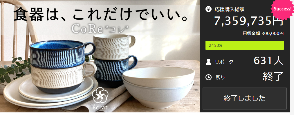 「Écrat独自の撥水加工について」 *お皿とボウルは、「磁器」という素材で石が原料となっており、元々低吸水素材なので、撥水加工はしておりません。元々の素材として、油分など遠慮なくお使いいただけます。 *黒土のマグカップ、ローカップは、「陶器」という素材で土が原料となっており、吸水性があるため、Écrat独自の撥水加工を施しております。 *撥水加工は、使い始めは、水分がコロコロと玉状になり、食器表面を転がり落ちます。 使用を重ねるうち、水分が玉状になるほど弾かなくなりますが、使用に問題はありません。撥水加工の効果は長く持続します。 「食洗機・電子レンジ・漂白剤について」 食洗機・電子レンジ・漂白剤については、使用可能ですが、それぞれの使用方法に従って正しくご使用ください。使用方法によっては、痛みや破損を生じる場合もありますので、ご了承ください。 *食洗機、電子レンジ、漂白剤の使用により生じた痛み、破損については、個別の使用状況に大きな差があるため、ご対応できません。ご心配な方は少ない使用にするか、使用をお控えください。 *陶器は温度変化により、膨張や収縮をしています。そのため、急激な温度変化により、破損することがあります。食洗機を使用した直後の高温状態でのとり出し、電子レンジでの過度な加熱は避けて下さい。 *電子レンジの使用は、覚めた料理や飲物の温め程度での使用を想定しています。加熱調理は冷凍食品等含め、お控え下さい。 *食洗機は、各食洗機メーカーが推奨する正しい使用方法を想定しています。食洗機の説明書に従い、ご使用下さい。洗浄中の他のものとの接触や、洗い上がり直後の高温状態でのとり出しなどによって、痛みや破損が生じる場合があります。 「リターン品のお届けについて」 リターン品のお届けは、プロジェクト終了後2ヶ月前後となります。 *やむを得ない理由により、生産に遅れが生じる場合があります。ご了承ください。 本文中に記載させていただいたスケジュールは、あくまでプロジェクト公開時点の予定です。応援購入の性質上、配送遅延のおそれがございます。 原則として、配送遅延に伴う応援購入のキャンセルはできませんが、リターン配送予定月から6ヶ月を超えた場合には、希望者に限りキャンセルにて対応させていただきます。