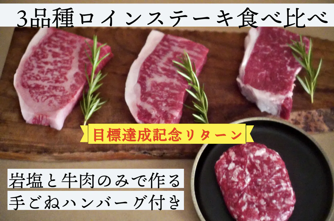 【3品種ロインステーキ食べ比べ/手ごねハンバーグ付き】を新しいリターンに設定しました。