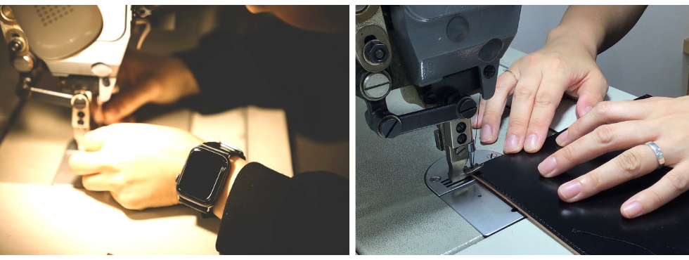 革の裁断から縫製、 検品まで、 国内の提携工房にて行います。