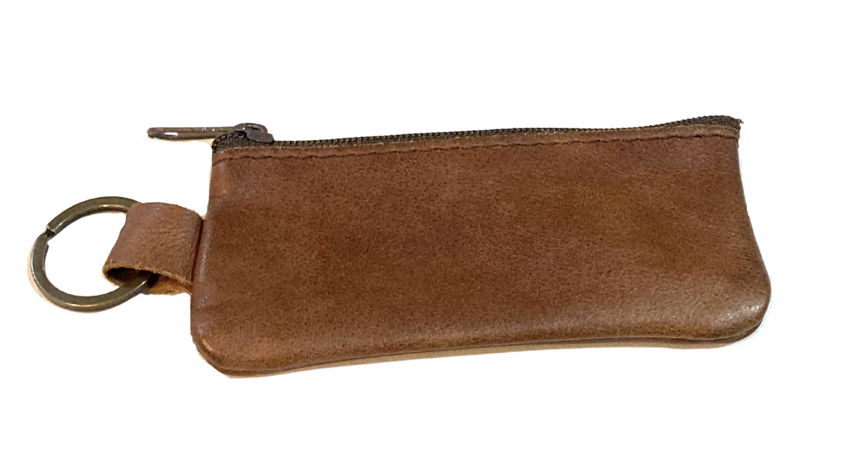 海外旅行中に見つけた「革の小銭入れキーホルダー」です。