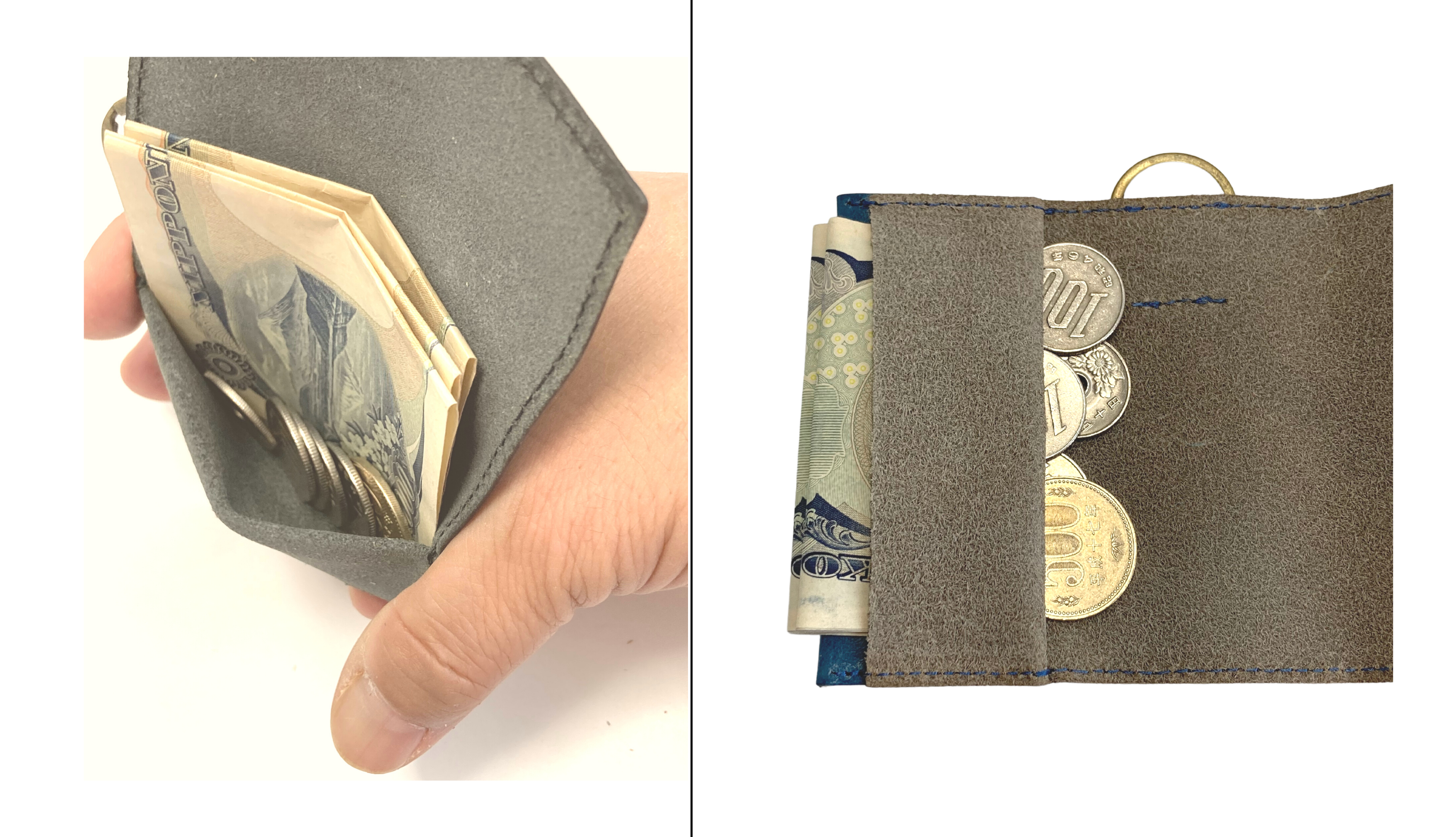 ・ 収納:小銭15枚 + 紙幣6枚程度。