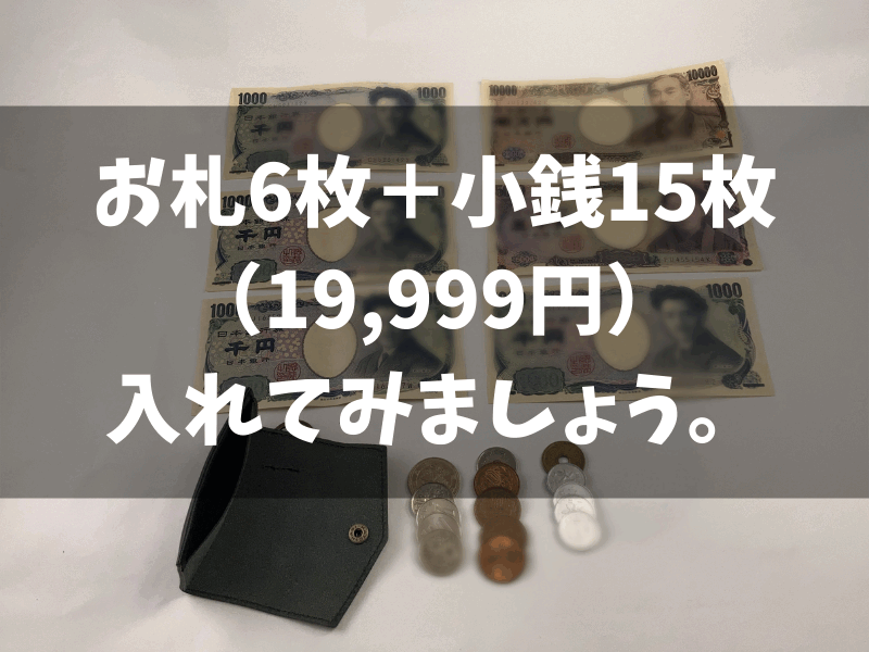 ※ 実際の使用は、紙幣3枚・小銭6枚程度で「軽く薄く」がおすすめです。