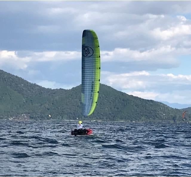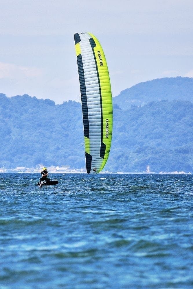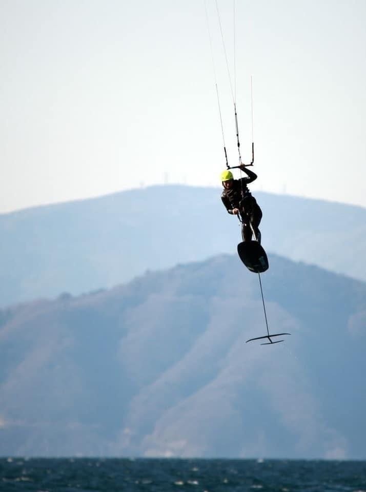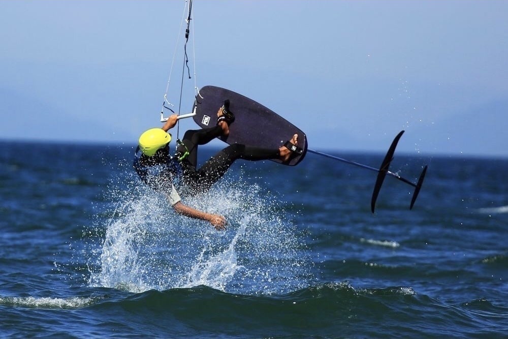 またパリ国際大会で新種目になったFormula Kite classで使うボードは一般の愛好家のボードと違い、ハイドロフォイルという水面を上に浮いて走る水中翼のついたボードを使い、最高速は80㎞に達するほどでスピード感とスリルが満点の競技です。