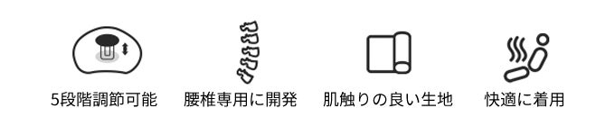 高さが5段階で調節可能で、 腰・背骨の形に合わせて高さ調節でき、一人ひとりの体型にフィットします。