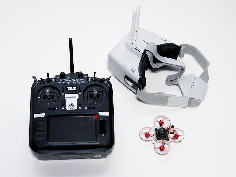 屋内レース用マイクロドローンでゴーグルを使用して飛ばすFPVドローンの体験ができます。ドローンカメラの映像を見に付けたゴーグルで見ながら飛ばします。まるで飛行機やヘリコプターに乗っている感覚で没入感を味わうことができ、ドローンレースはこのセットで行われています。有資格者がサポートいたします!