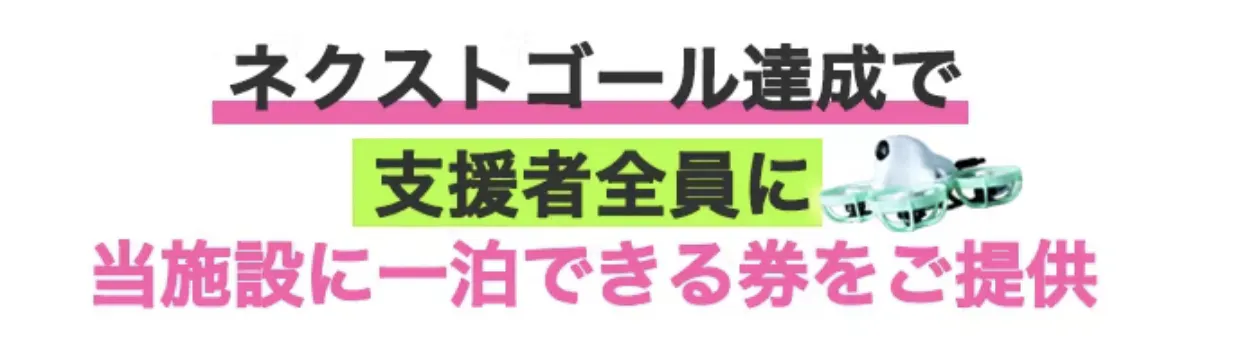 そして「ネクストゴールを達成」できたら恩返しとして支援者の皆さん「全員に一泊できる券」をご提供させていただきます!