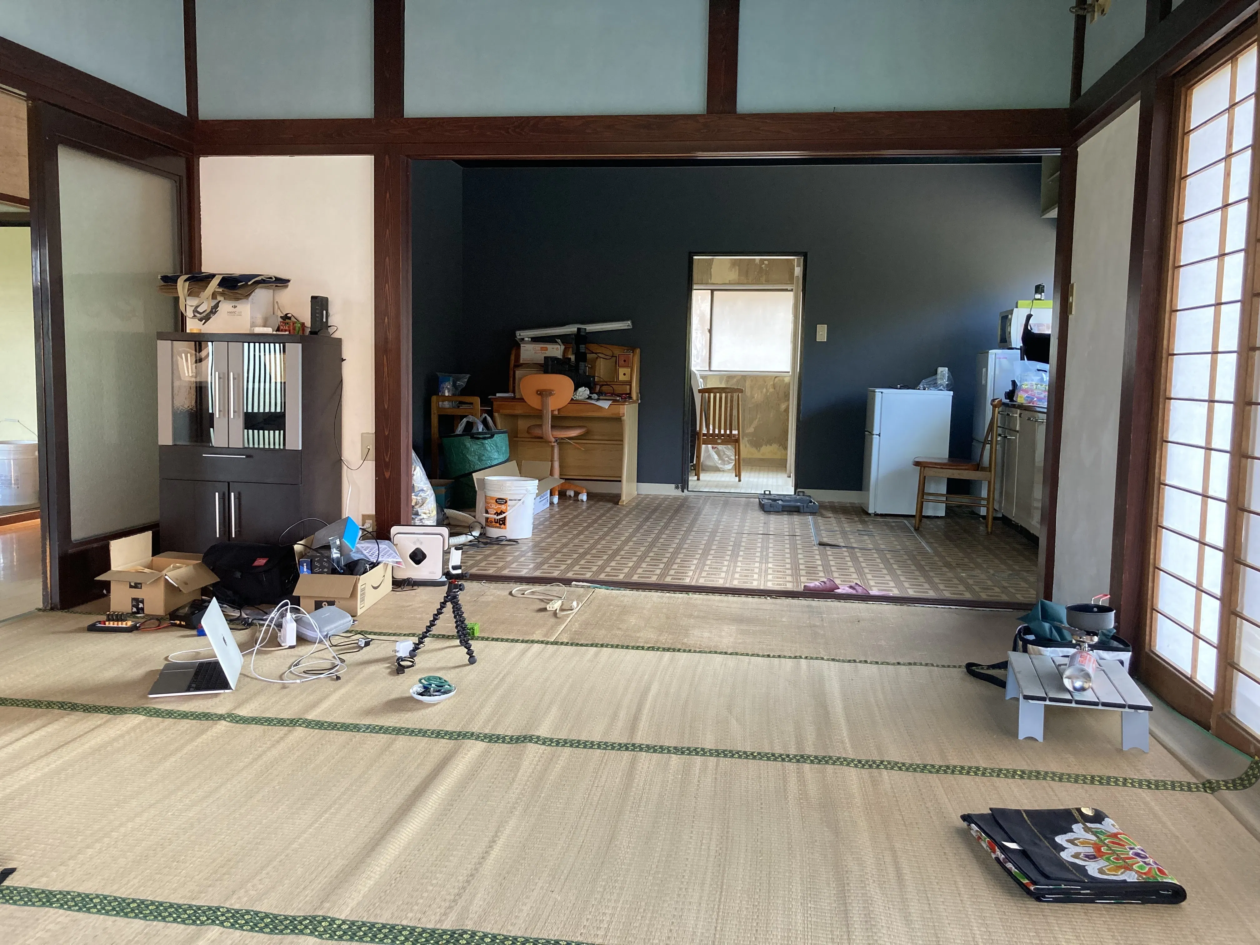 和室とキッチンの仕切りになっていた引き戸を外す事で、メチャクチャ広い空間になりました!