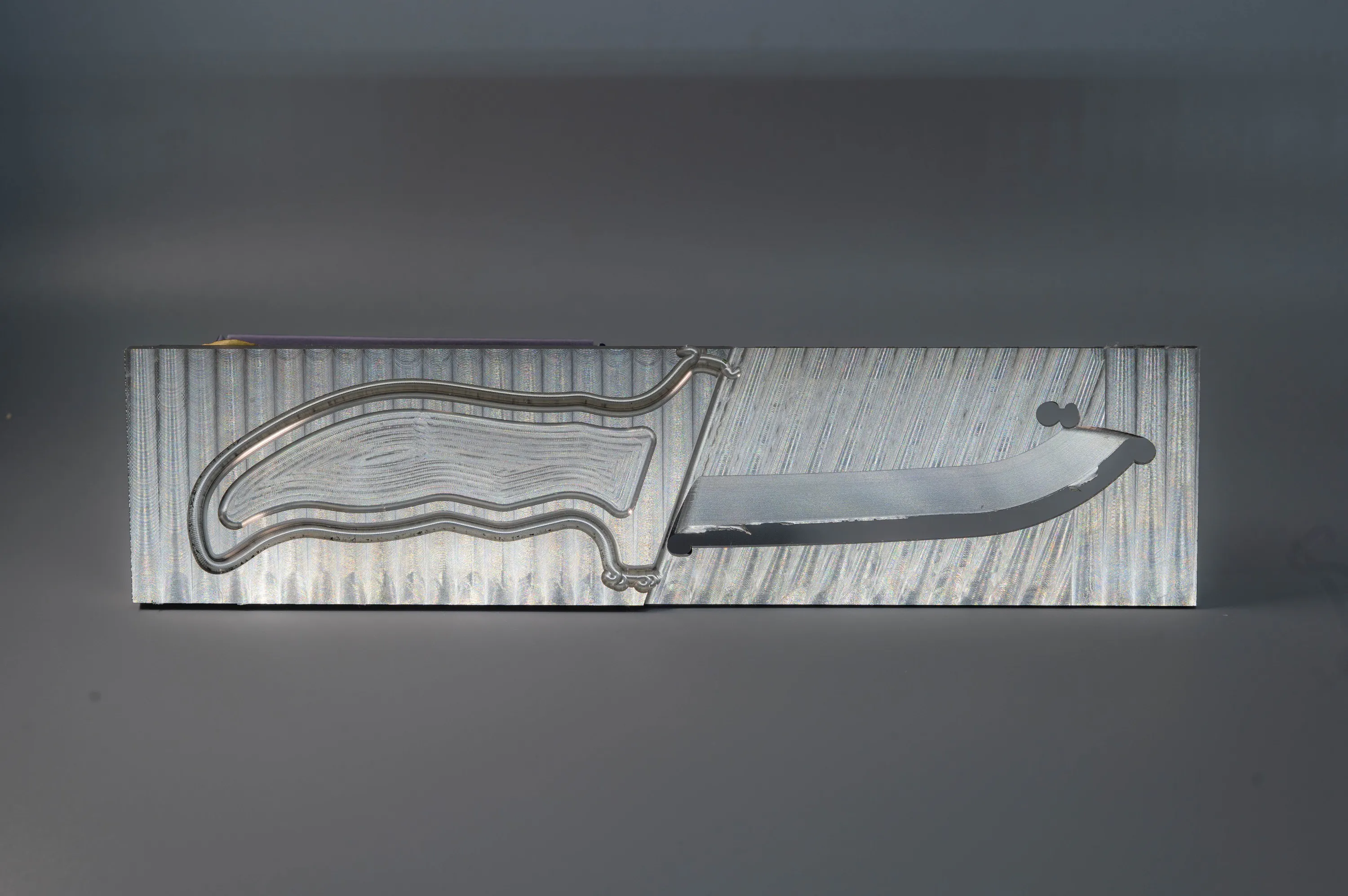 私たちは金属の加工を得意とする企業です。今までお客様からご依頼いただいた図面をもとに製作を行ってきましたが、自分達で形状から製作方法を考え実現できたチタン製ナイフです。私たちの技術を色々な物に活かしていく為にもこれからもチャレンジし続けます。