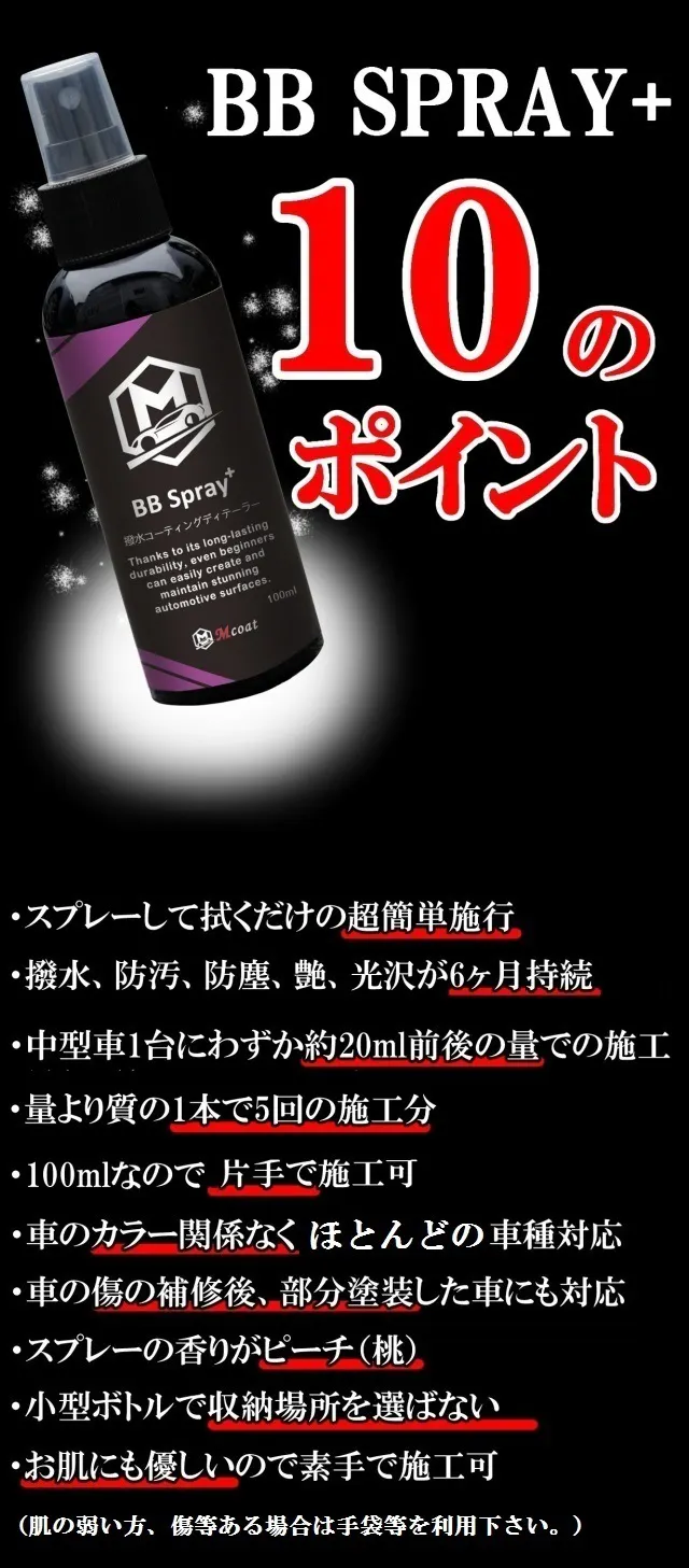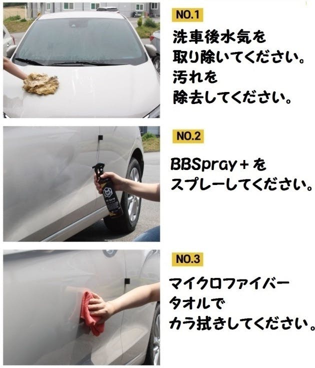 ●BB Spray+は車ボディに利用頂けます。