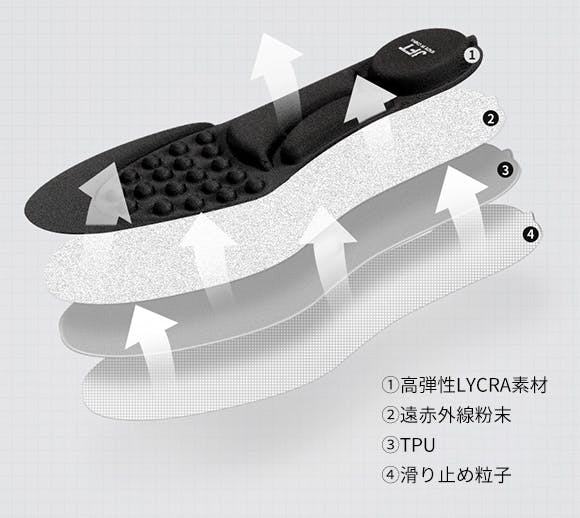 防臭加工が施されている4層構造。第2層には遠赤外線パウダーが練りこまれ、抗菌防臭効果も期待できます。