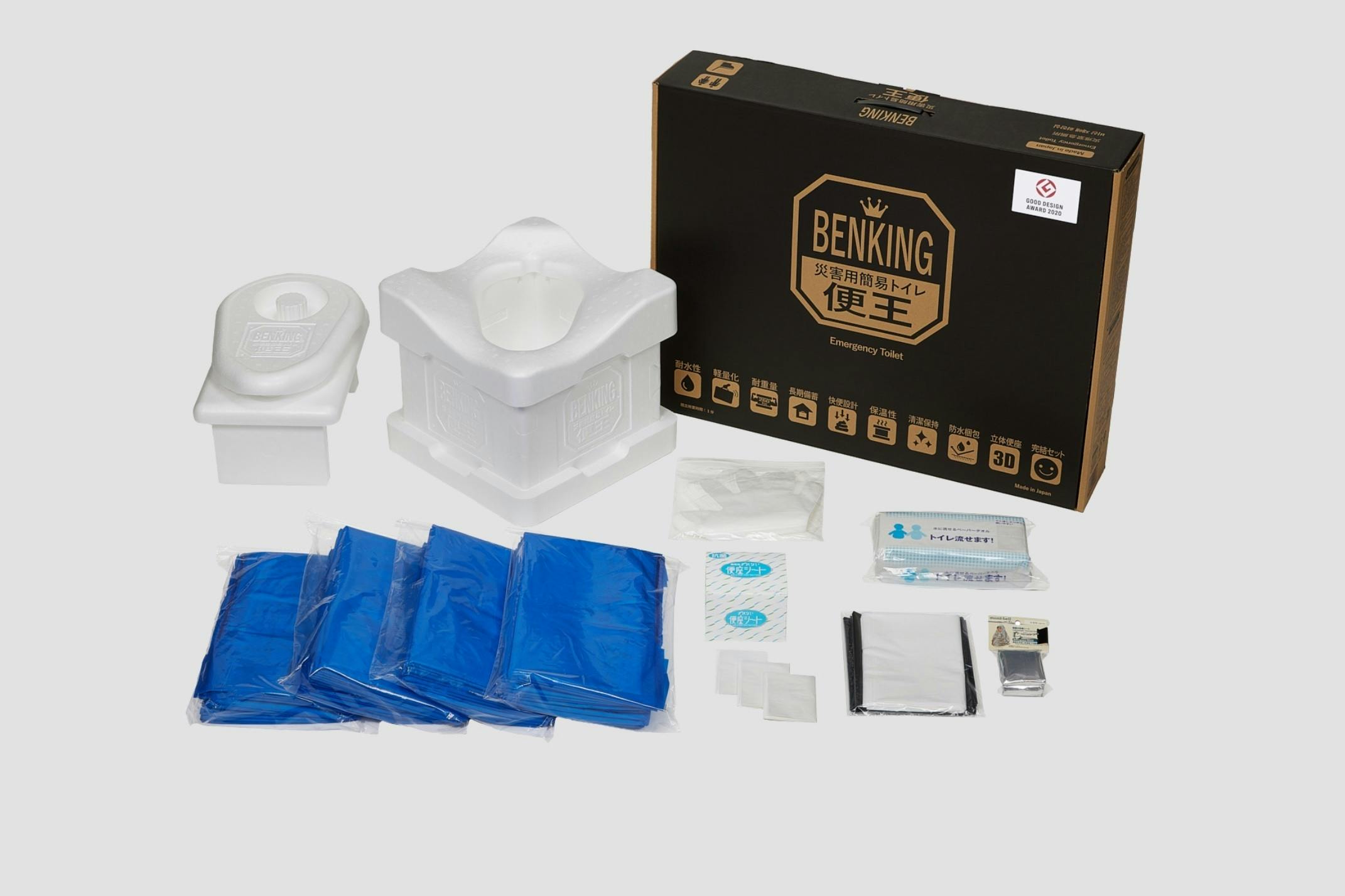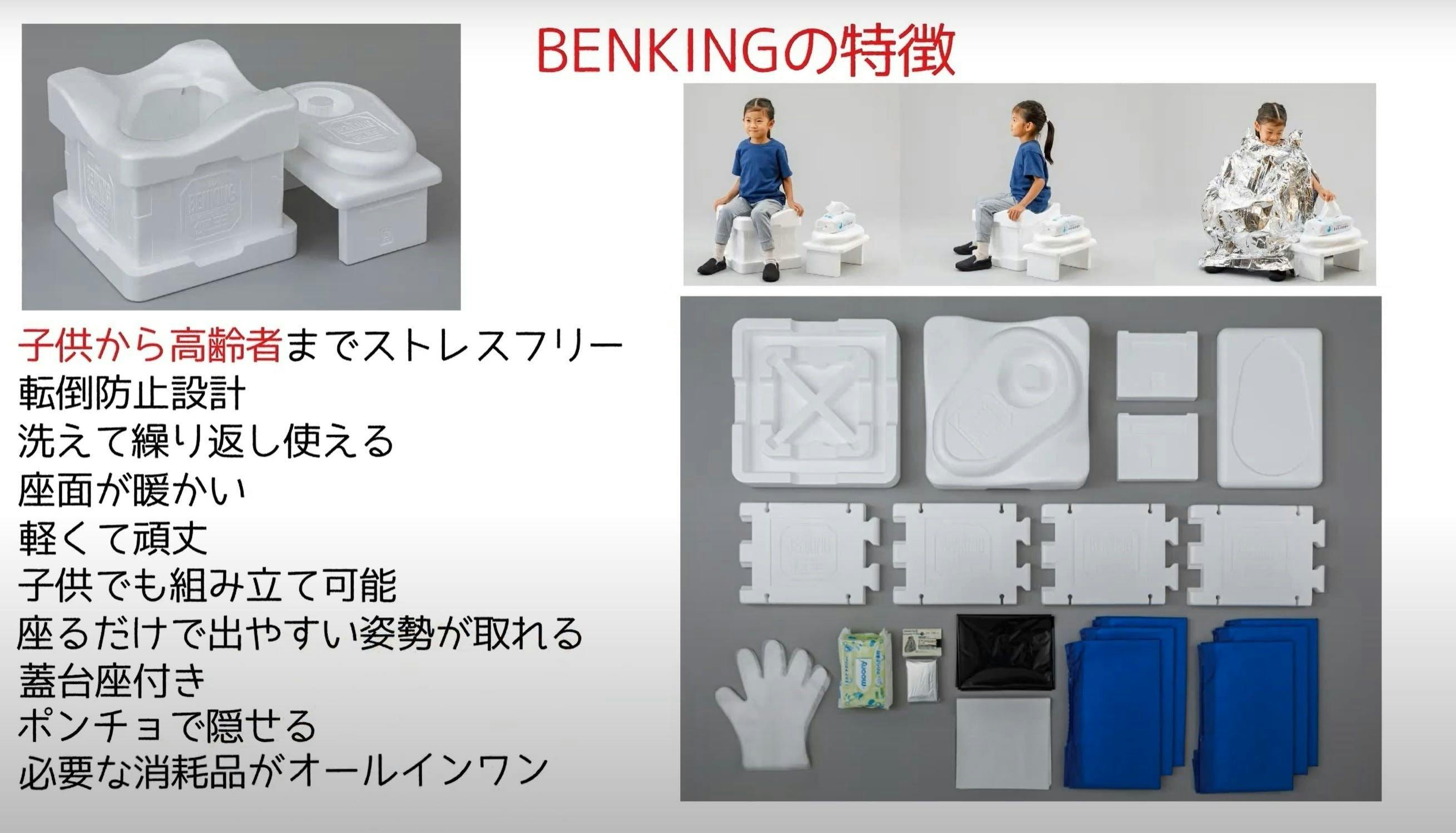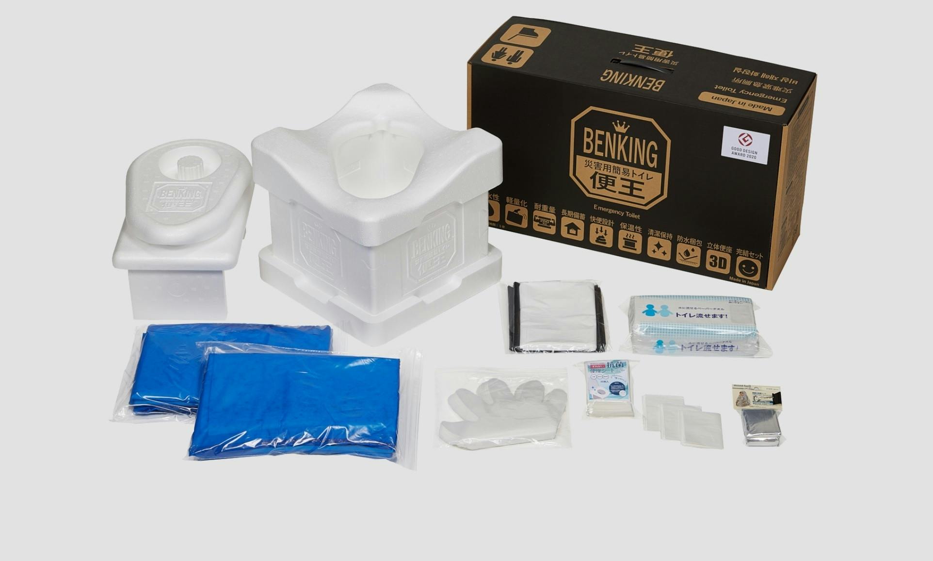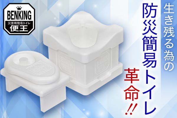 1年の歳月を掛け形状を研究し、特に女性の意見を多く取り入れた老若男女が「安心・安全・衛生・快適」に使える「高密度発泡スチロール製組立式簡易トイレ」を完成させ、災害後の自助期間を生き残るための簡易トイレセット「BENKING/便王」を開発しました。